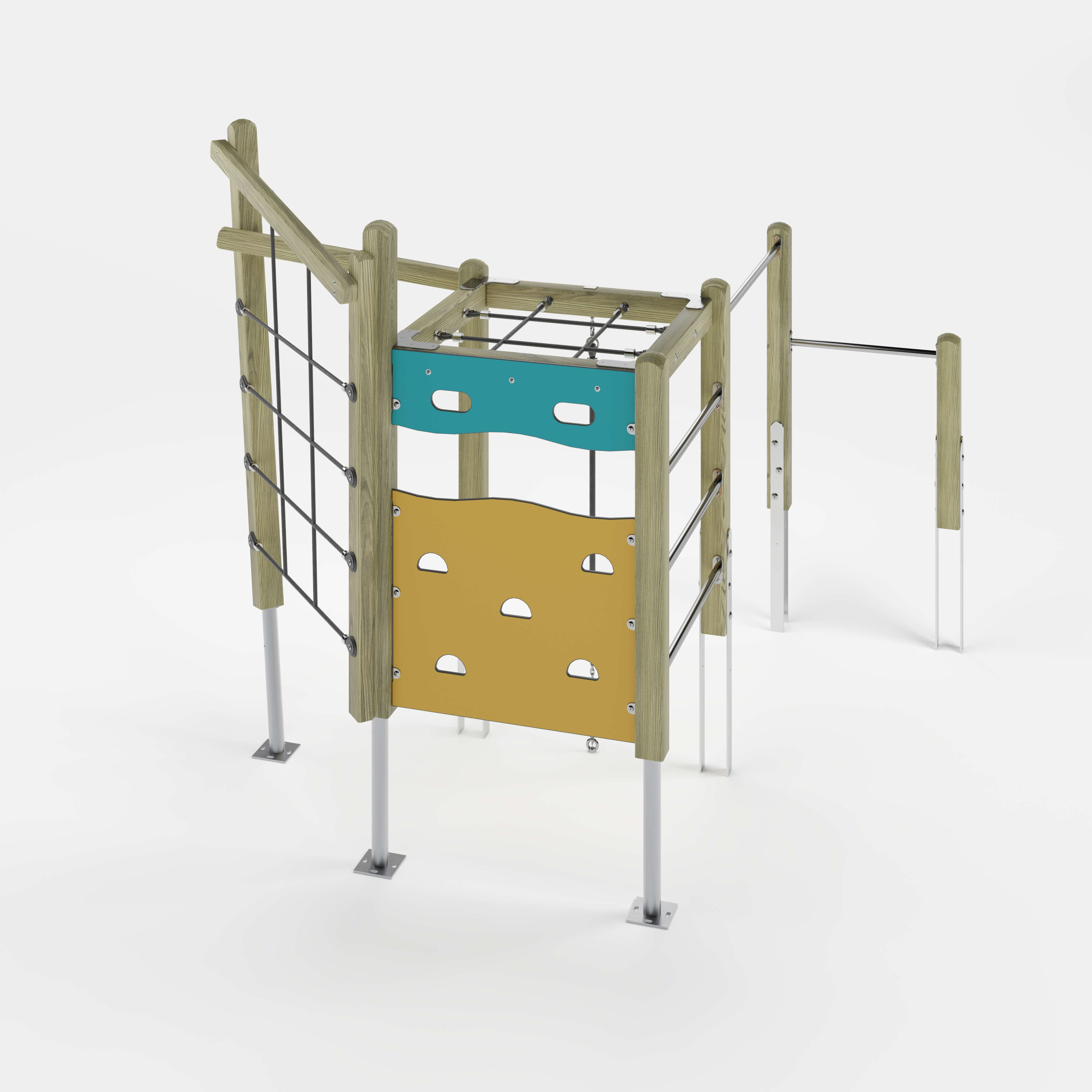 | Lieferumfang | 1x Adapter: Nadelholz oder Stahl 6x Pfostenkonstruktion: Nadelholz oder Stahl 1x Netzrahmen: Nadelholz, Hochdrucklaminat (HPL) , kunststoffummanteltes Stahlseil 1x Chaos Netzaufstieg: Nadelholz, kunststoffummanteltes Stahlseil 2x Kletterplatte: Hochdrucklaminat (HPL) 1x Klettertau: kunststoffummanteltes Stahlseil, Edelstahl (V2A) 1x Leiter senkrecht: Edelstahl (V2A) 2x Durchlaufsicherung: Edelstahl (V2A) Beschläge: Edelstahl (V2A) |