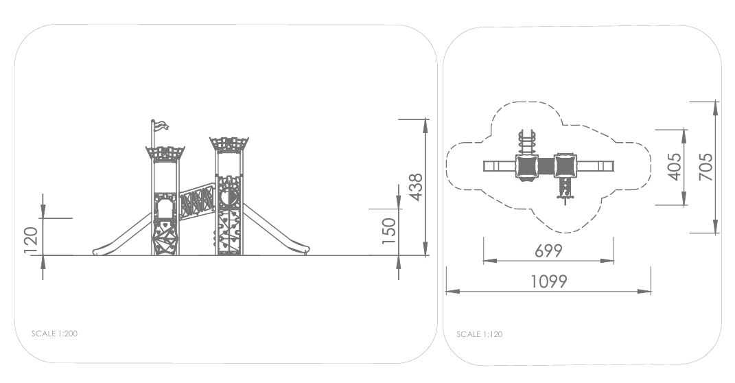 Rutschen aus Edelstahl AISI 304 mit einer 2 mm dicken Metallplatte, präzise im CNC-Verfahren gefertigt. Die Seitenteile bestehen aus 15 mm starkem HDPE-Polyethylen, das absolut feuchtigkeitsbeständig und UV-resistent ist.
