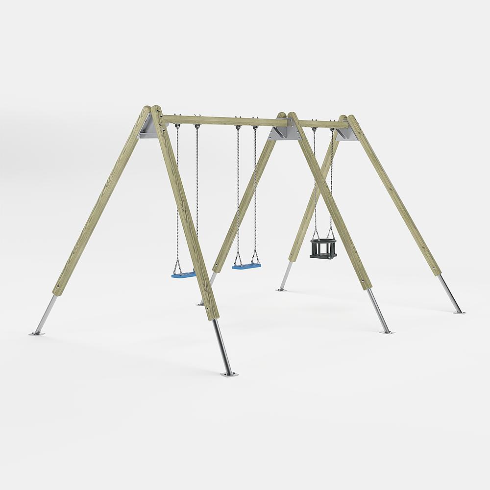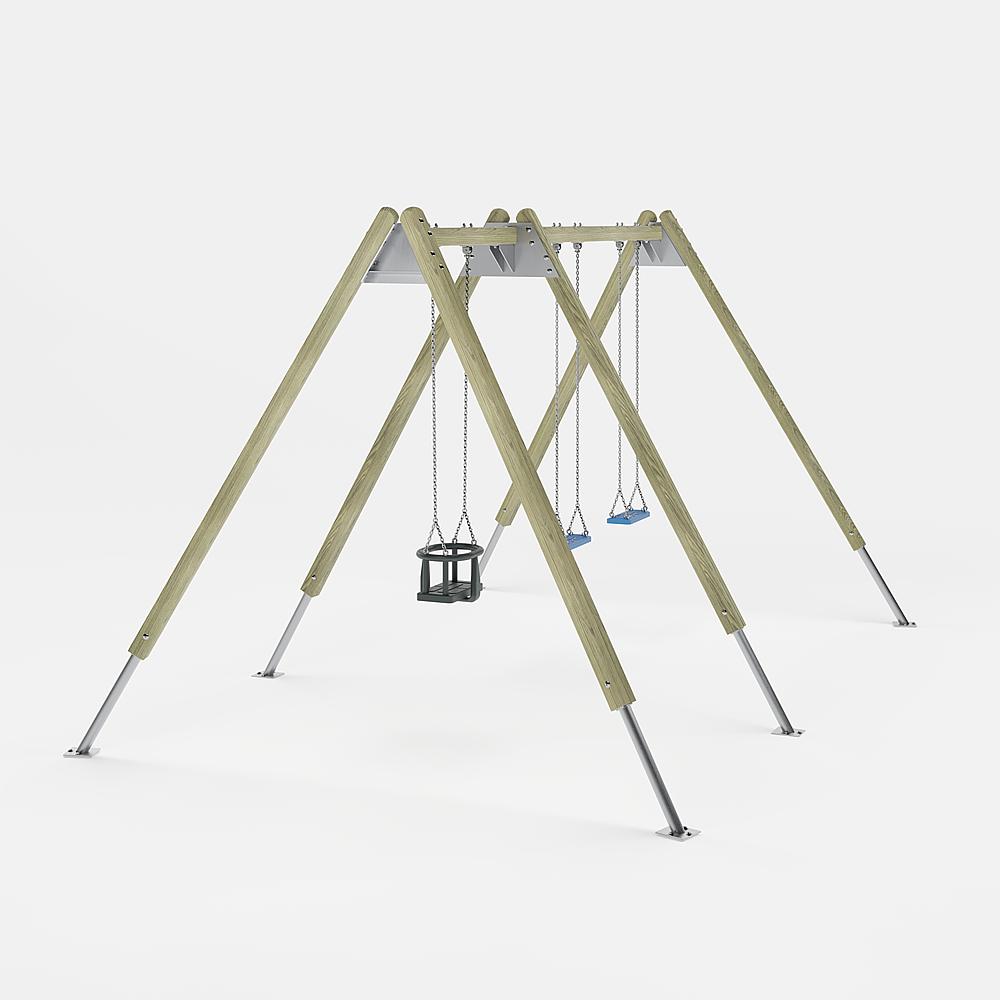 | Lieferumfang | 6x Pfosten mit Ständerfüßen: NH, Stahl feuerverzinkt 2x Schaukelbalken: Stahl feuerverzinkt 6x Schaukelgelenke: Stahl verzinkt 2x Sicherheitsschaukelsitz mit Ketten: Gummi, Edelstahl 1x Kleinkindschaukelsitz mit Kette: Gummi, Edelstahl |