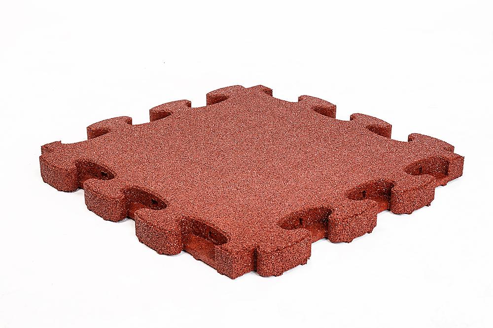Fallschutzplatte in Puzzleform, mit stabiler, dreidimensionaler Verbindung durch positive und negative Puzzleanschlüsse sowie 3D-Zwischenelemente, Knöpfe und Knopfeinbuchtungen für eine