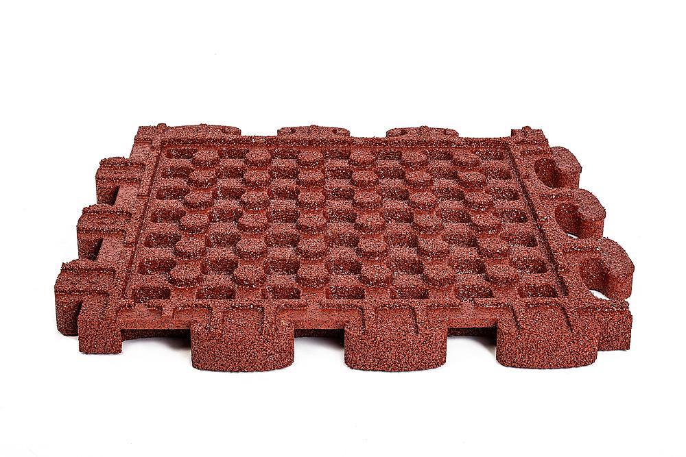 Fallschutzplatte 62 x 62 cm, aus coloriertem Gummigranulat, mit Drainage an der Plattenunterseite.