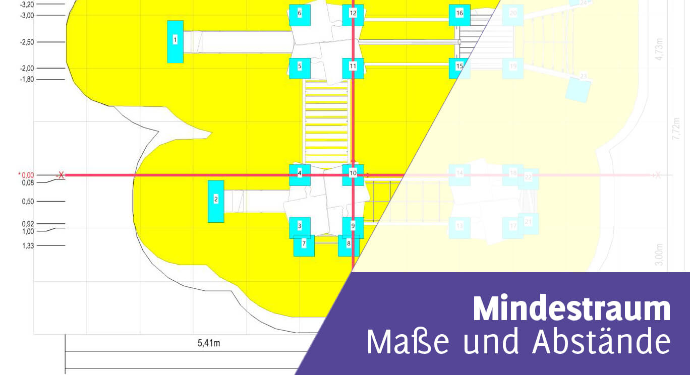 - Die Größe der einzelnen Spielgeräte sowie die Abstände zwischen ihnen sind festgelegt, um Unfälle zu vermeiden (Mindestraum).