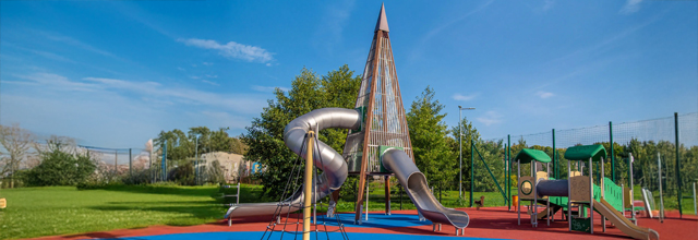 Die MEGA-Serie sorgt für echte Highlights auf dem Spielplatz. Mit Türmen von bis zu 10 Metern Höhe und spektakulären Spielelementen wie langen Rutschen, Seilaufstiegen und Brücken entstehen imposante Spiellandschaften. MEGA ist die perfekte Lösung für große Anlagen und öffentliche Plätze, die Kindern ein intensives Spielerlebnis bieten und zugleich als Blickfang wirken sollen.