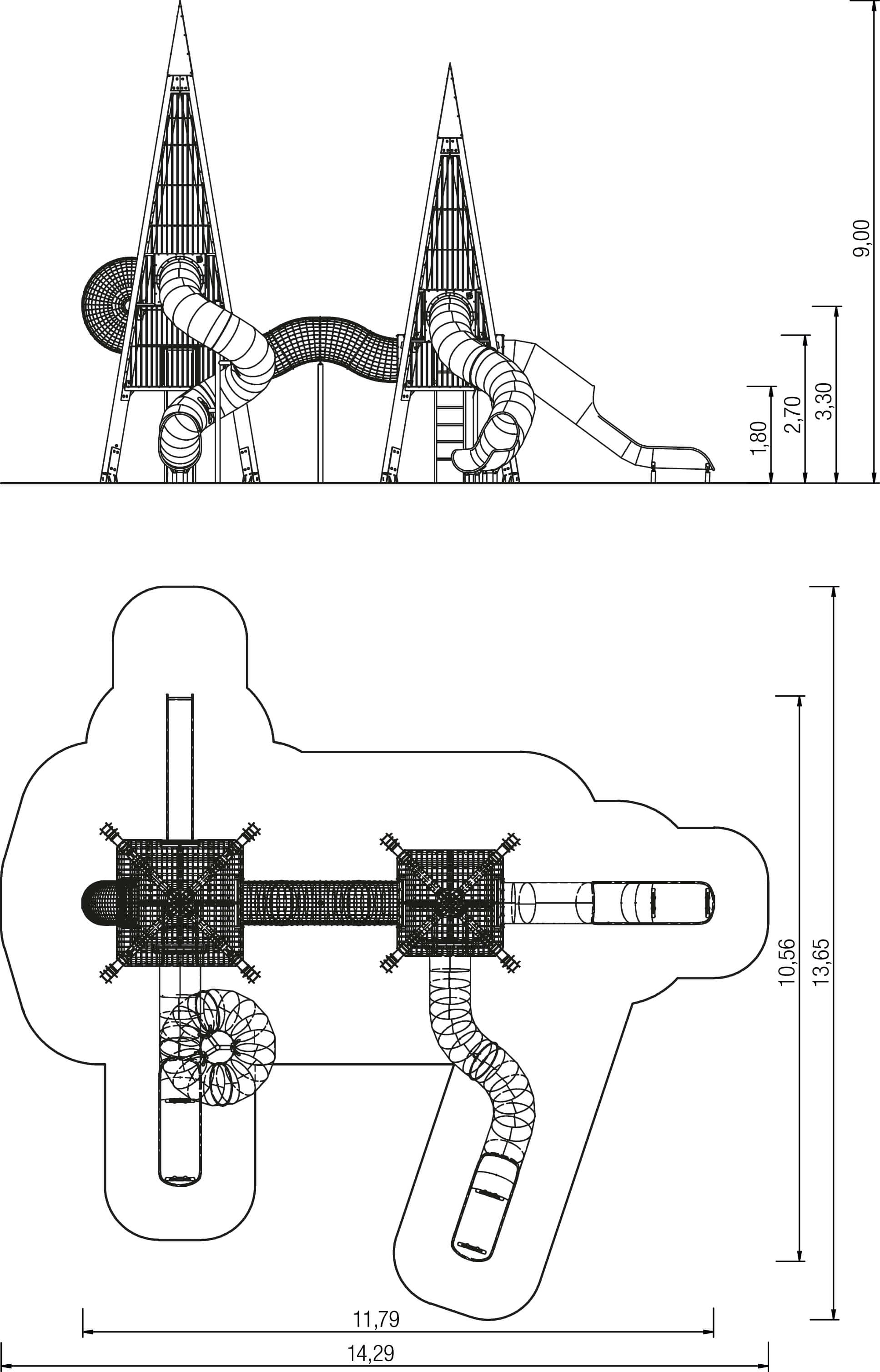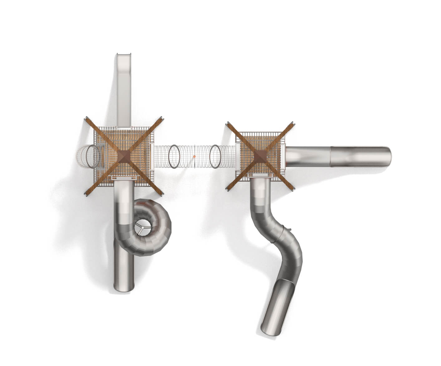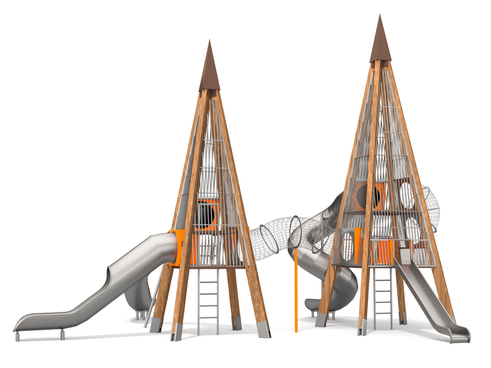 Für hohe und großflächige Spielplatzgeräte bietet die Kombination aus verzinktem, pulverbeschichtetem Stahlblech und 6 mm HPL höchste statische Stabilität. Ideal für tragende Plattformen mit großer Spannweite – dauerhaft wetterfest & formstabil.