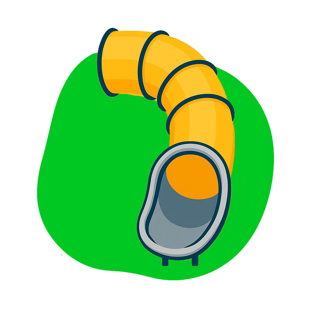 Rutschen und Dächer werden im Rotationsgussverfahren aus LDPE (Low-Density Polyethylen) hergestellt. Dank seiner Elastizität und Zähigkeit ist LDPE sehr widerstandsfähig gegenüber äußeren Einflüssen wie Stößen und Schlägen.
