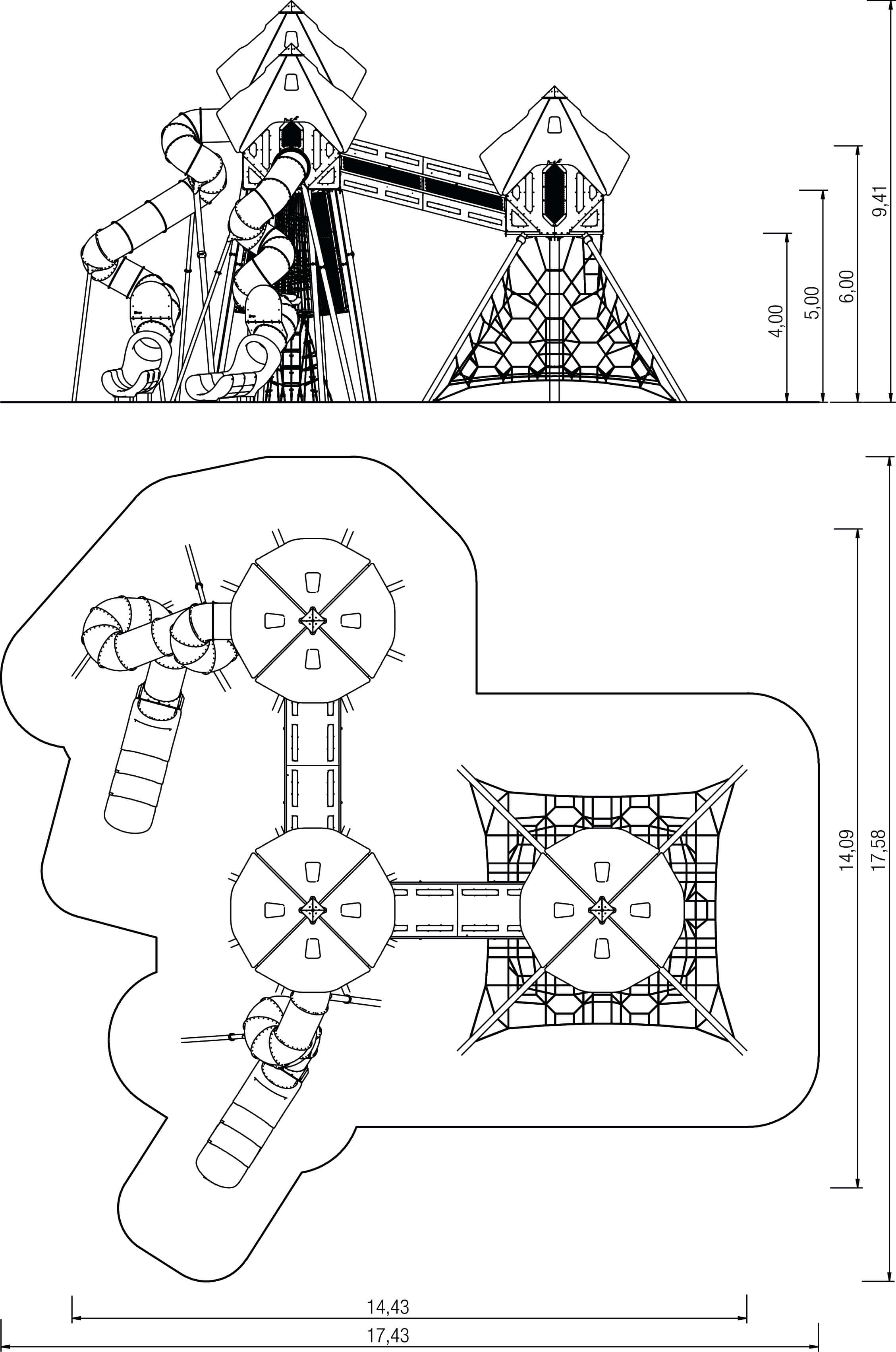 Für hohe und großflächige Spielplatzgeräte bietet die Kombination aus verzinktem, pulverbeschichtetem Stahlblech und 6 mm HPL höchste statische Stabilität. Ideal für tragende Plattformen mit großer Spannweite – dauerhaft wetterfest & formstabil.