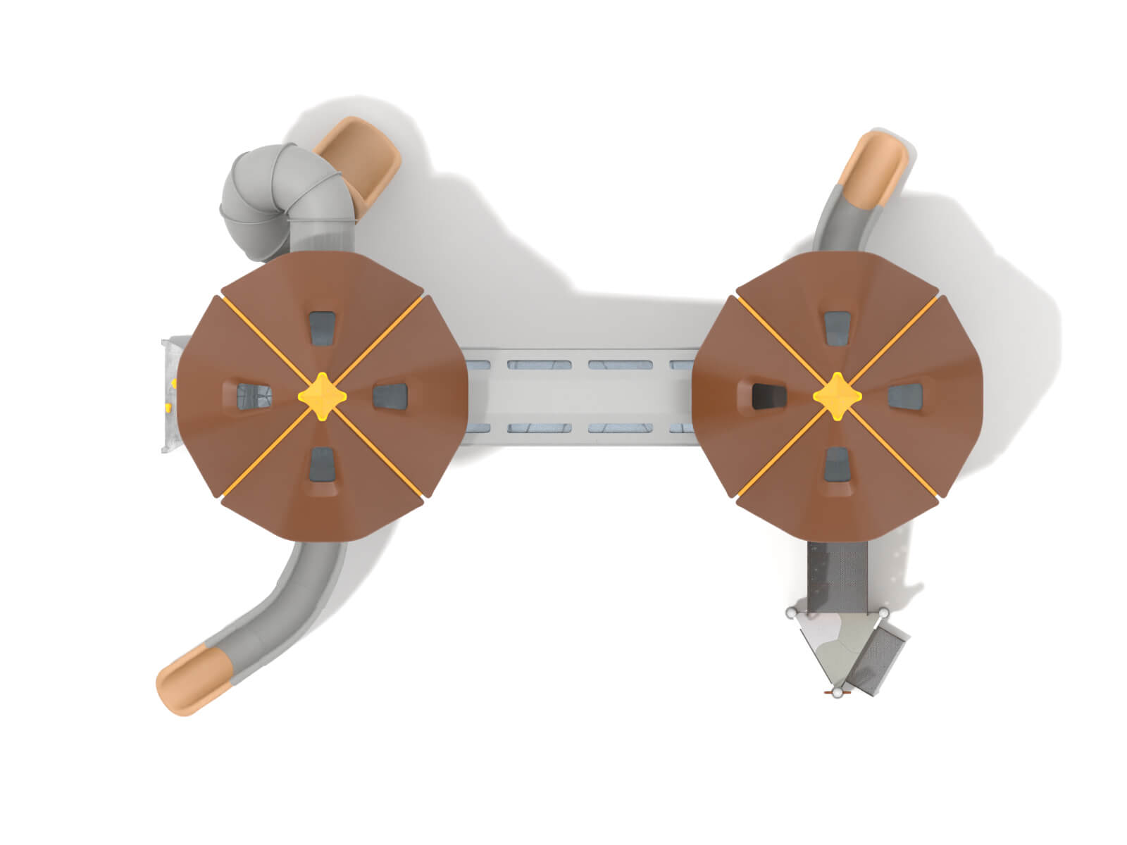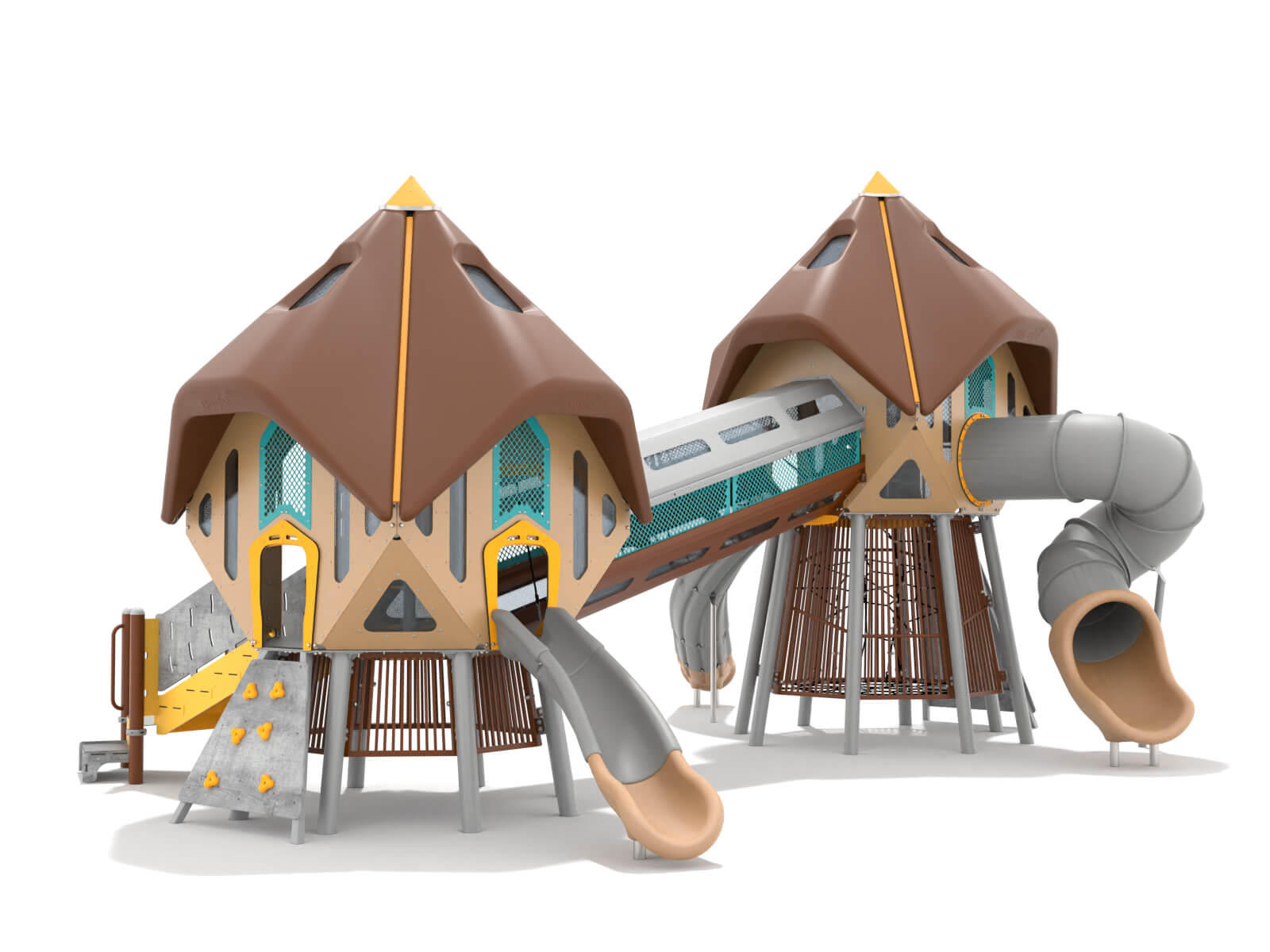 Für hohe und großflächige Spielplatzgeräte bietet die Kombination aus verzinktem, pulverbeschichtetem Stahlblech und 6 mm HPL höchste statische Stabilität. Ideal für tragende Plattformen mit großer Spannweite – dauerhaft wetterfest & formstabil.