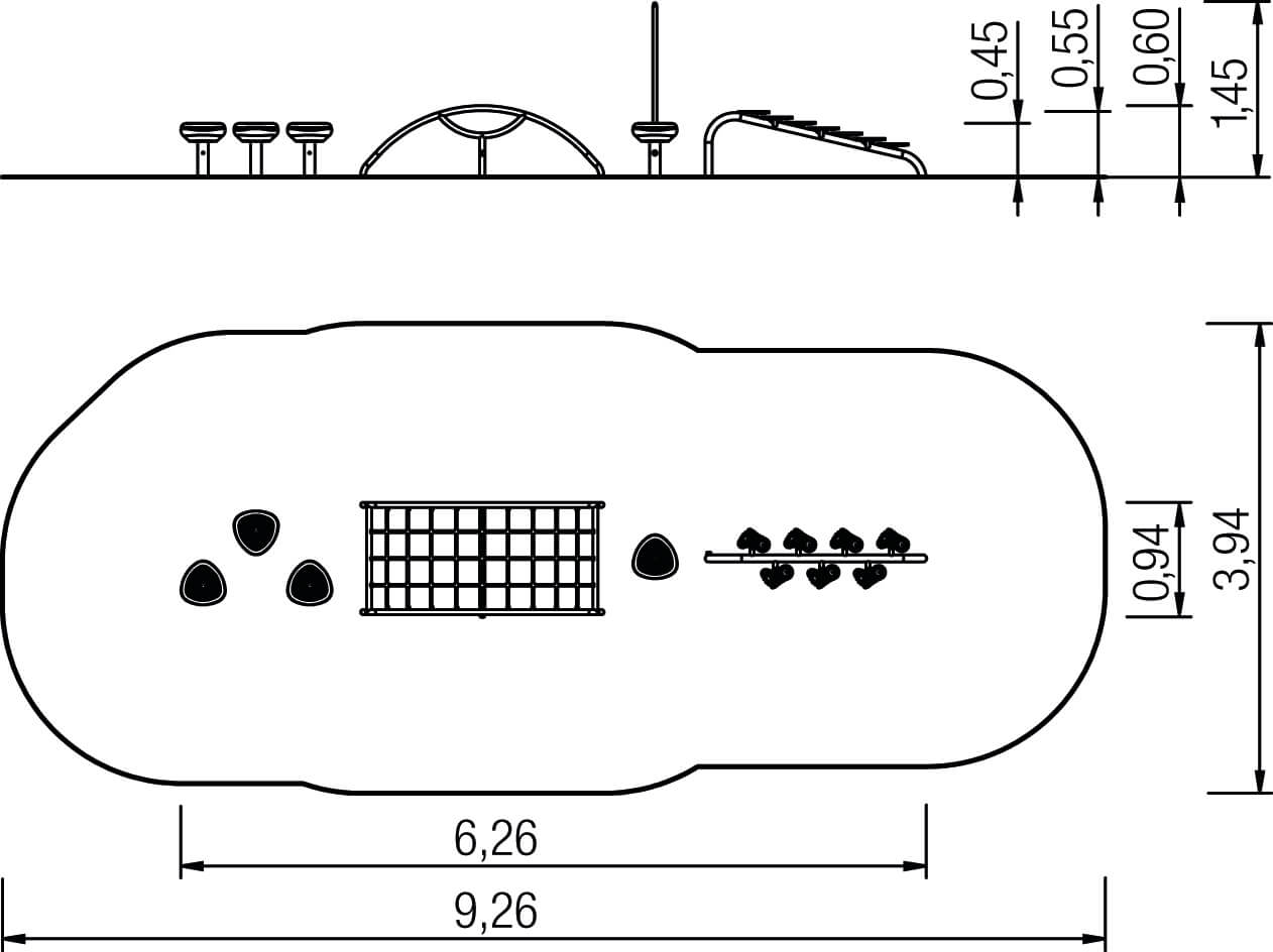 Rutschen aus Edelstahl AISI 304 mit einer 2 mm dicken Metallplatte, präzise im CNC-Verfahren gefertigt. Die Seitenteile bestehen aus 15 mm starkem HDPE-Polyethylen, das absolut feuchtigkeitsbeständig und UV-resistent ist.