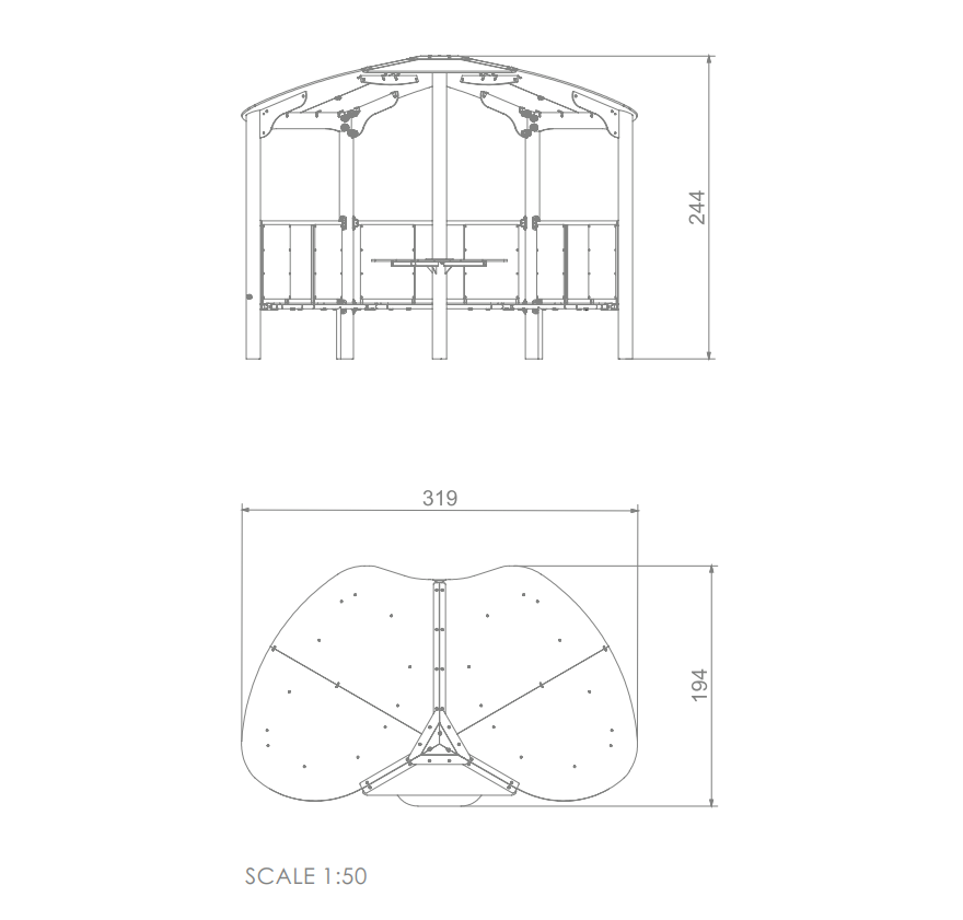 Lieferumfang: 1x Pavillon mittel: Hochdrucklaminat (HPL), Stahl Pulver