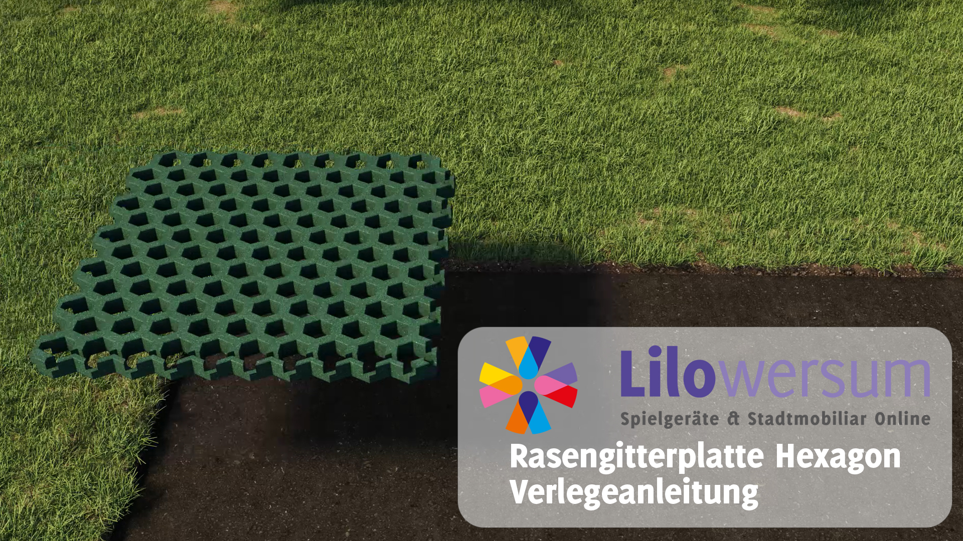 Fallschutzplatte in Rasengitterform, mit Hexagonwaben und einer stabilen, formschlüssigen Sicherung durch Verbindungselemente