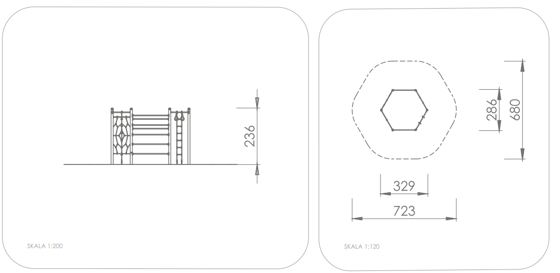 Sechseckanlage Ira empfohlene Altersgruppe: ab 3 Jahre Lieferumfang: 1x Klettergerüst: Stahl Pulver 1x Kletternetz: Polypropylen, Edelstahl 1x Sprossenleiter: Edelstahl 1x Klettertau: Polypropylen, Edelstahl 1x Ringe: Edelstahl 1x Strickleiter: Polypropylen, Edelstahl 2x Reckstange: Edelstahl Mindest-Raum: 6,80x7,23x4,16 m freie Fallhöhe: 220 cm Montage: 2 Personen/6 Std. Bodenbeschaffenheit: mind. Sand Fundamente: 8x OF Fallschutz netto: 39,0 m² Zertifikat: - LV USP: - Artikel-Nr.: - Bezeichnung: Sechseckanlage Ira LV Passus: Hersteller: Uniwersum GmbH Bahnhofstr. 4 01259 Dresden 0351/210720100 mail@uniwersum.org oder gleichwertiger Art angebotenes Fabrikat:……………………………… |