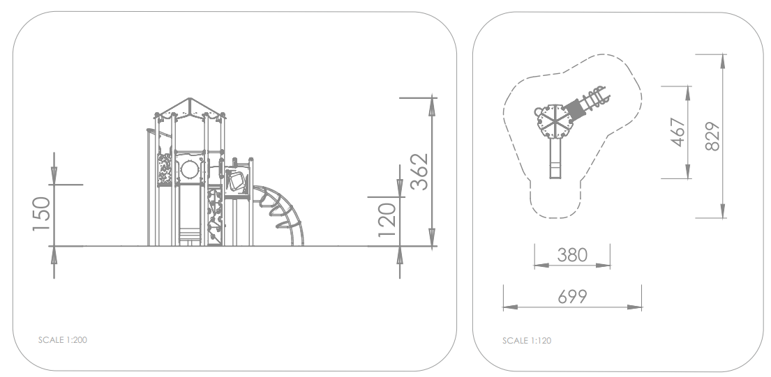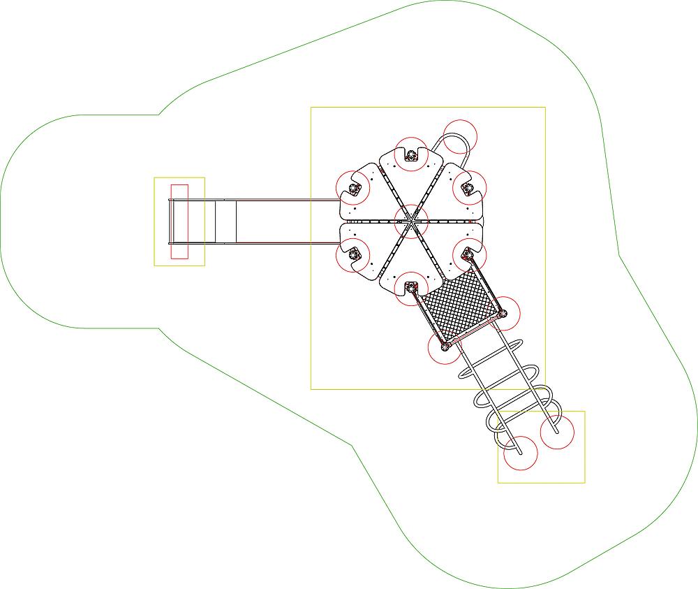 1x Spielturm 6eck mit Dach: Stahl Pulver, HDPE, Hochdrucklaminat (HPL), Edelstahl 1x Spielturm: Stahl Pulver, HDPE, Hochdrucklaminat (HPL), Edelstahl 1x Kletterplatte: Hochdrucklaminat (HPL), Polyester 1x Leiter: Edelstahl 1x Rutschstange: Edelstahl 1x Rutsche PH 150 cm: Edelstahl, HDPE |