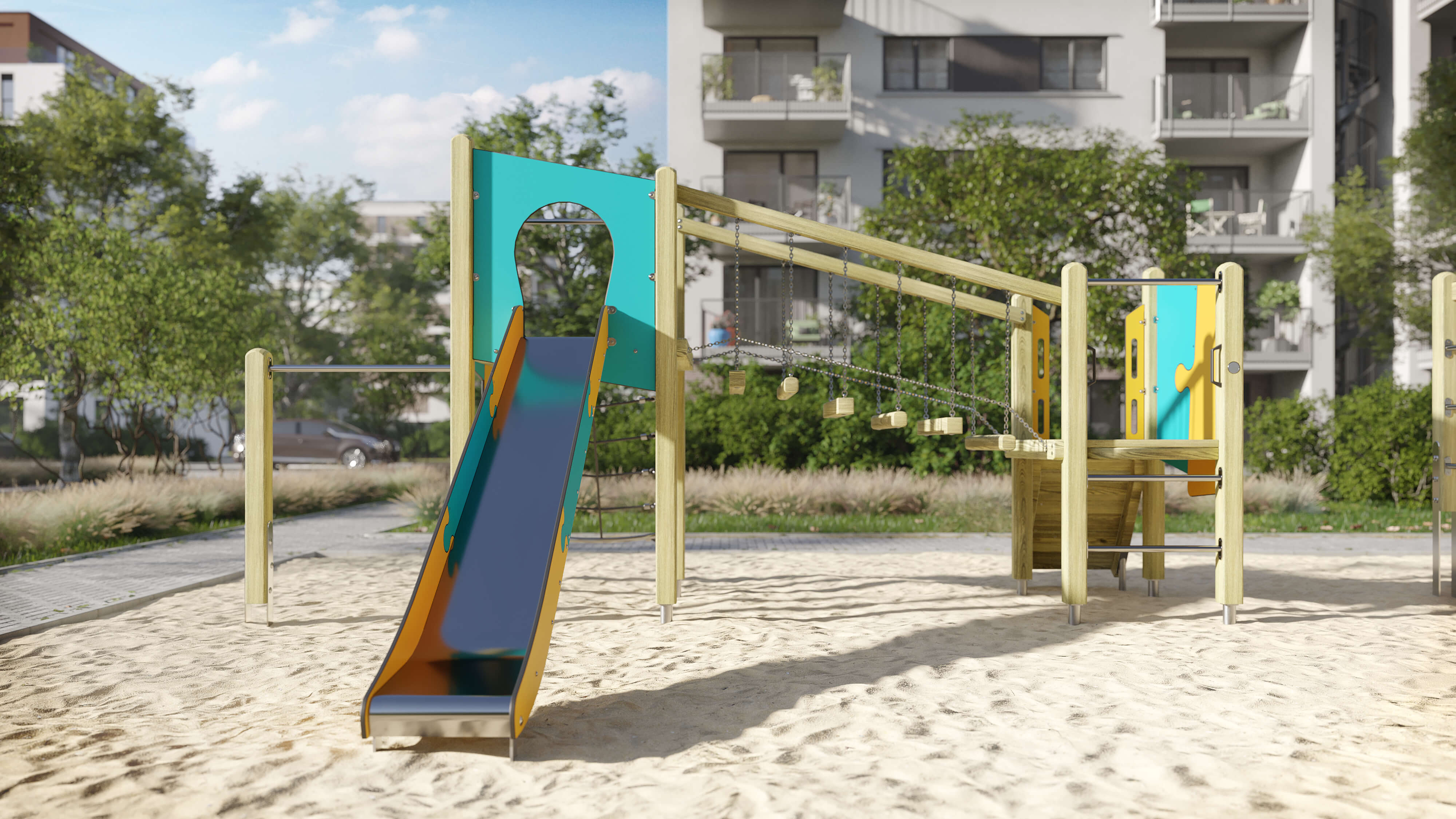 Dieses Spielgerät kann mit unseren Fertigfundamenten verwendet werden. Das spart Zeit und Budget.
