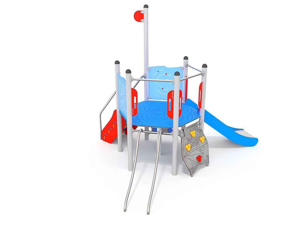 1x Spielturm 6eck: Stahl Pulver, Edelstahl, Hochdrucklaminat (HPL), HDPE 1x Kletterrampe: Hochdrucklaminat (HPL), Polyester 1x Spielbrüstung TicTacToe: Polyethylen, Edelstahl 1x Treppe: Hochdrucklaminat (HPL), HDPE, Edelstahl 1x Handlaufrutsche: Edelstahl 1x Rutsche PH 90 cm: Edelstahl, HDPE |