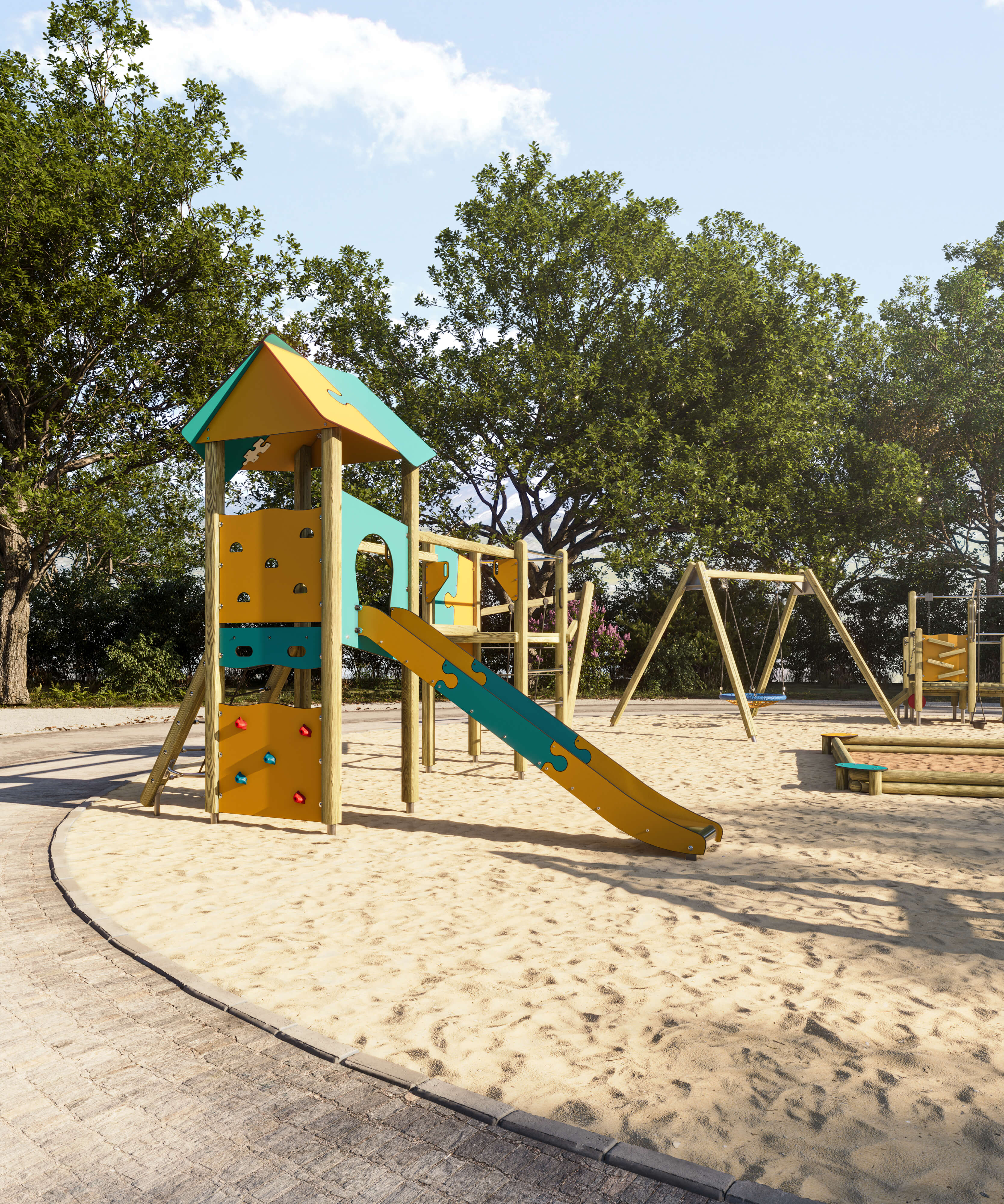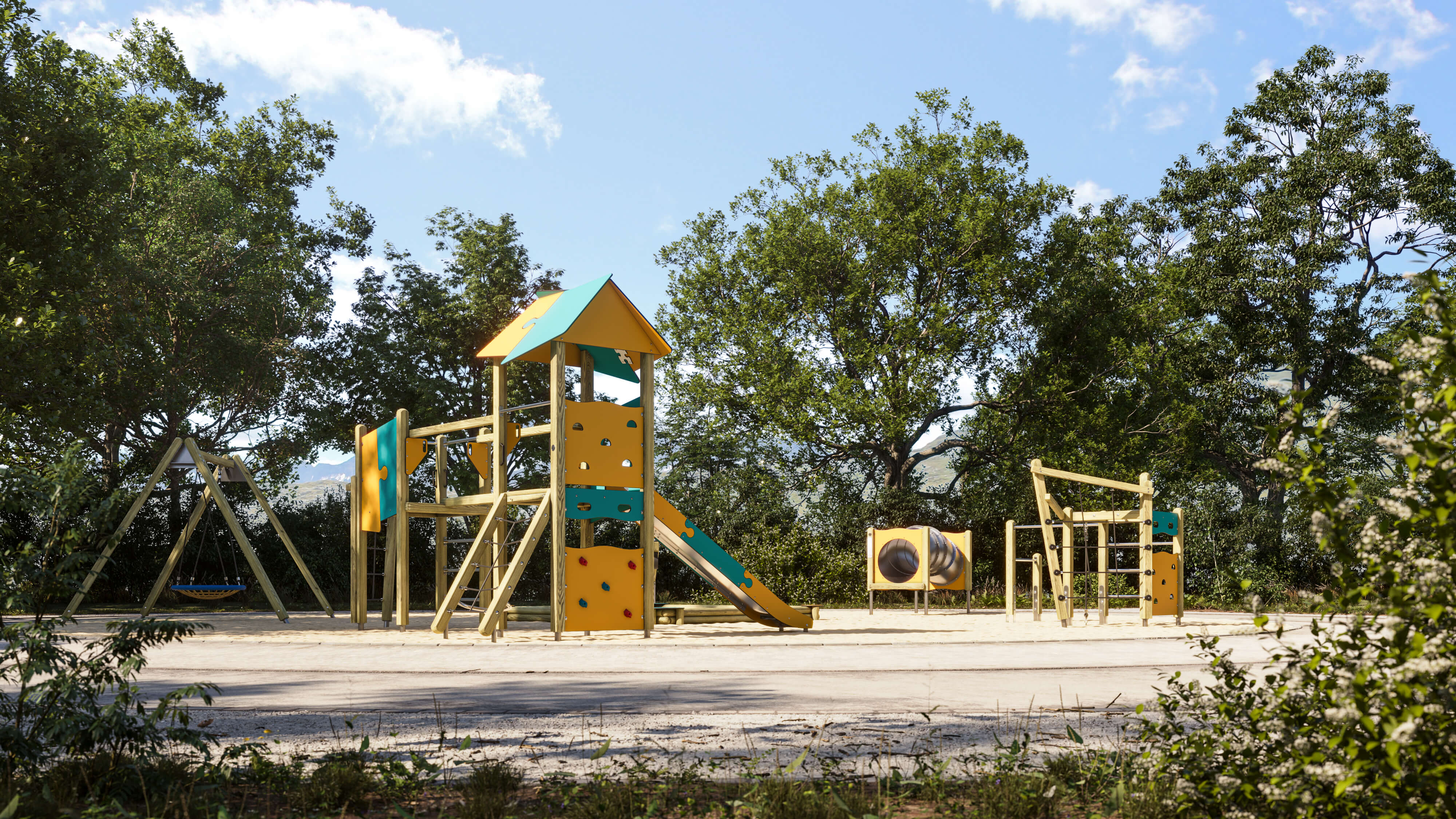 Dieses Spielgerät kann mit unseren Fertigfundamenten verwendet werden. Das spart Zeit und Budget.