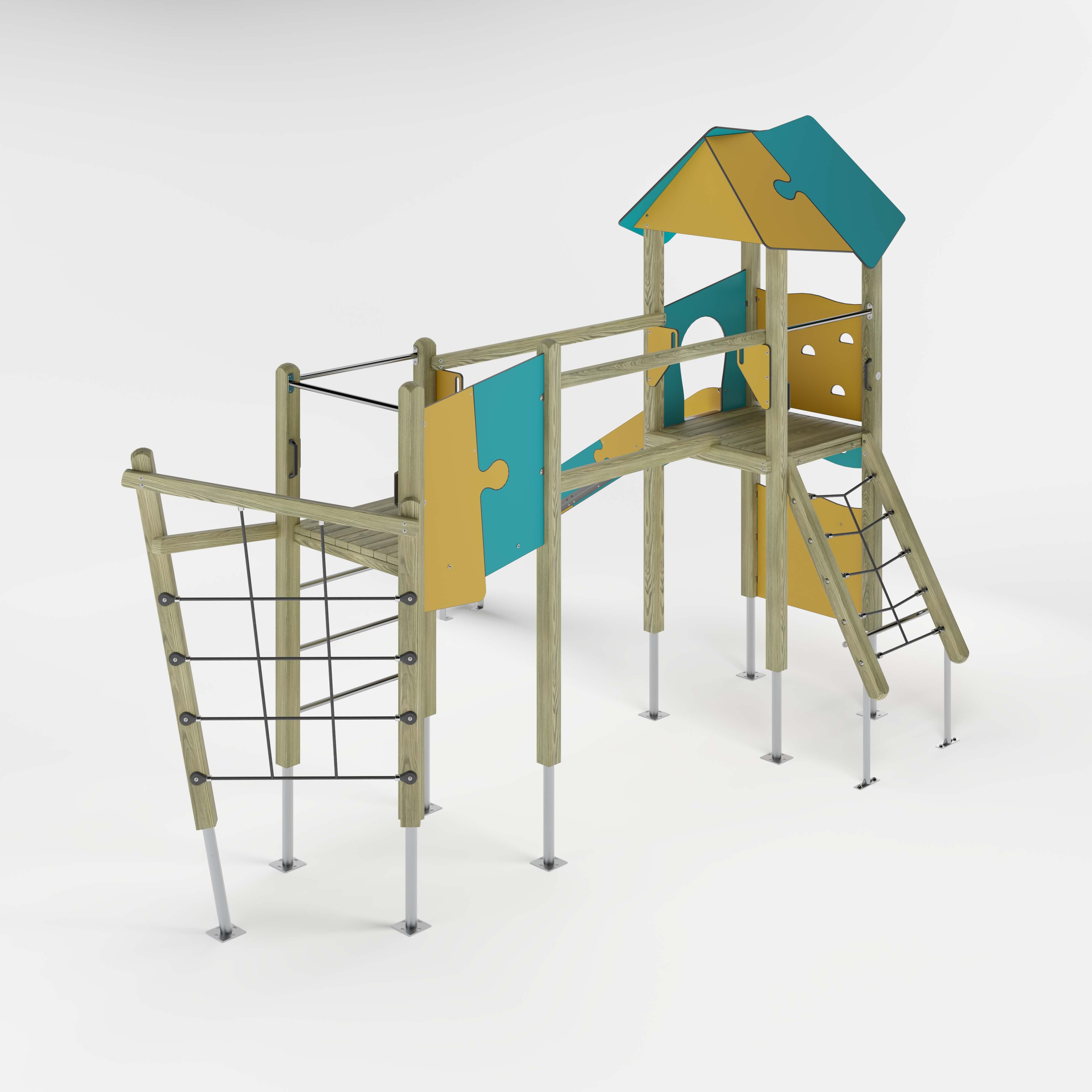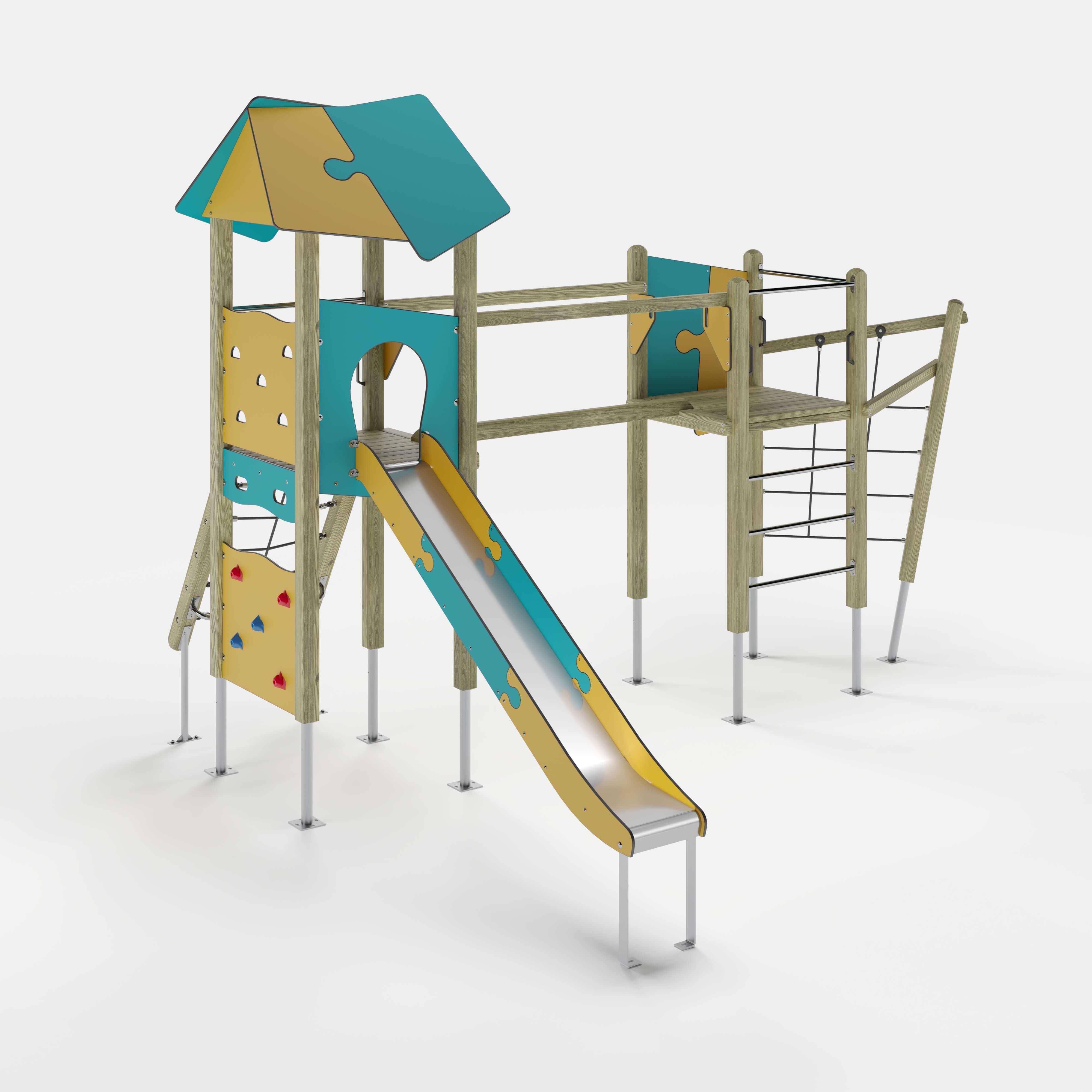 | Lieferumfang | 1x Adapter: Nadelholz oder Stahl8x Pfostenkonstruktion: Nadelholz oder Stahl2x Podestkonstruktion: Nadelholz7x Puzzledach: Hochdrucklaminat (HPL)1x Chaos Netzaufstieg: Nadelholz, kunststoffummanteltes Stahlseil1x Kletterplatte: Hochdrucklaminat (HPL) , Glasfaserverstärkter Kunststoff (GFK)2x Kletterplatte: Hochdrucklaminat (HPL)1x Leiter senkrecht: Edelstahl (V2A)1x Netzaufstieg schräg: Nadelholz, kunststoffummanteltes Stahlseil, Edelstahl (V2A)1x Balancierbalken gerade: Nadelholz2x Brüstung: Hochdrucklaminat (HPL)3x Durchlaufsicherung: Edelstahl (V2A)1x Rutscheneinstiegsplatte: Hochdrucklaminat (HPL)2x Zugangsverengung: Hochdrucklaminat (HPL)3x Griffset: Aluminium, beschichtet6x Seitenschutz: Hochdrucklaminat (HPL)1x Rutsche: Edelstahl (V2A)Beschläge: Edelstahl (V2A) |