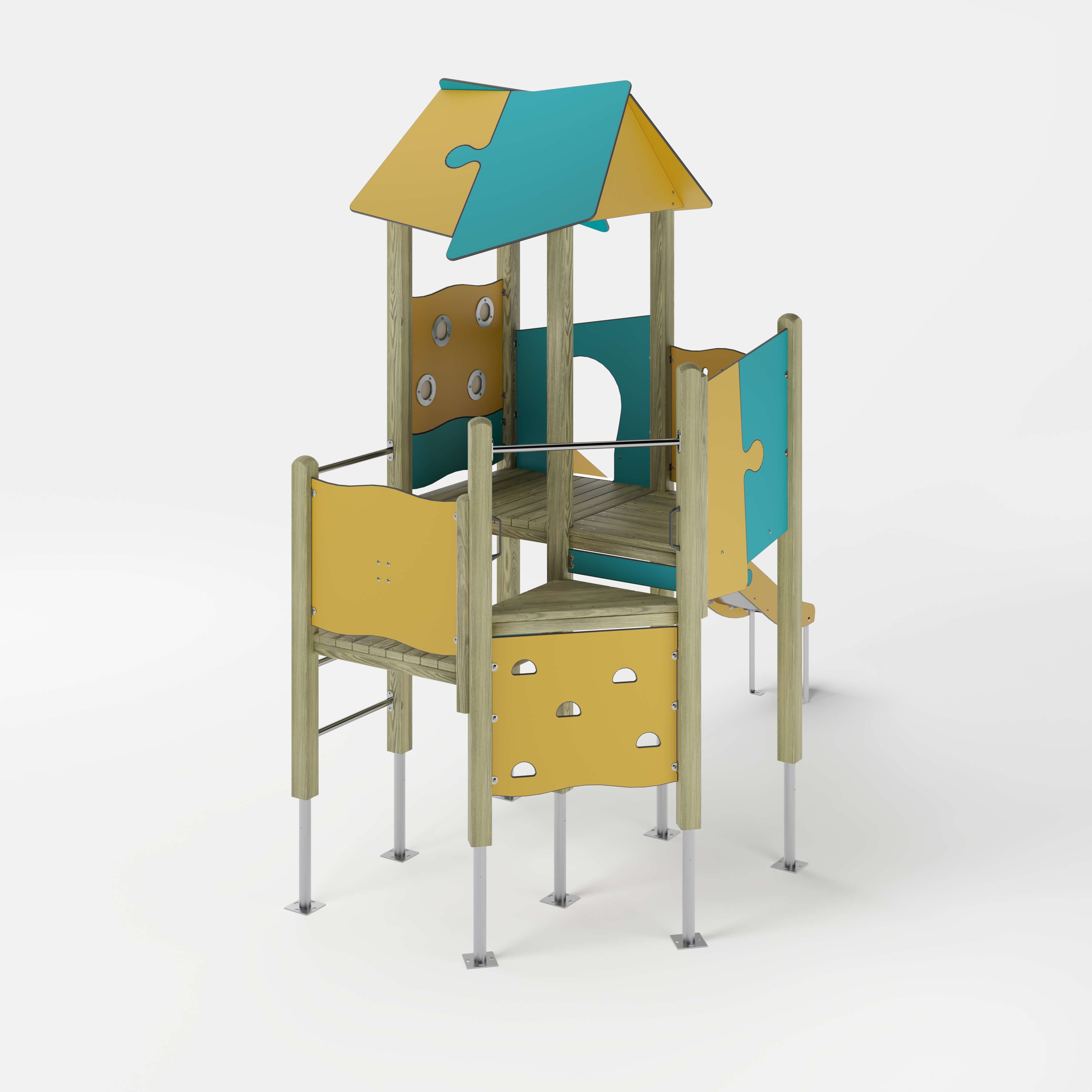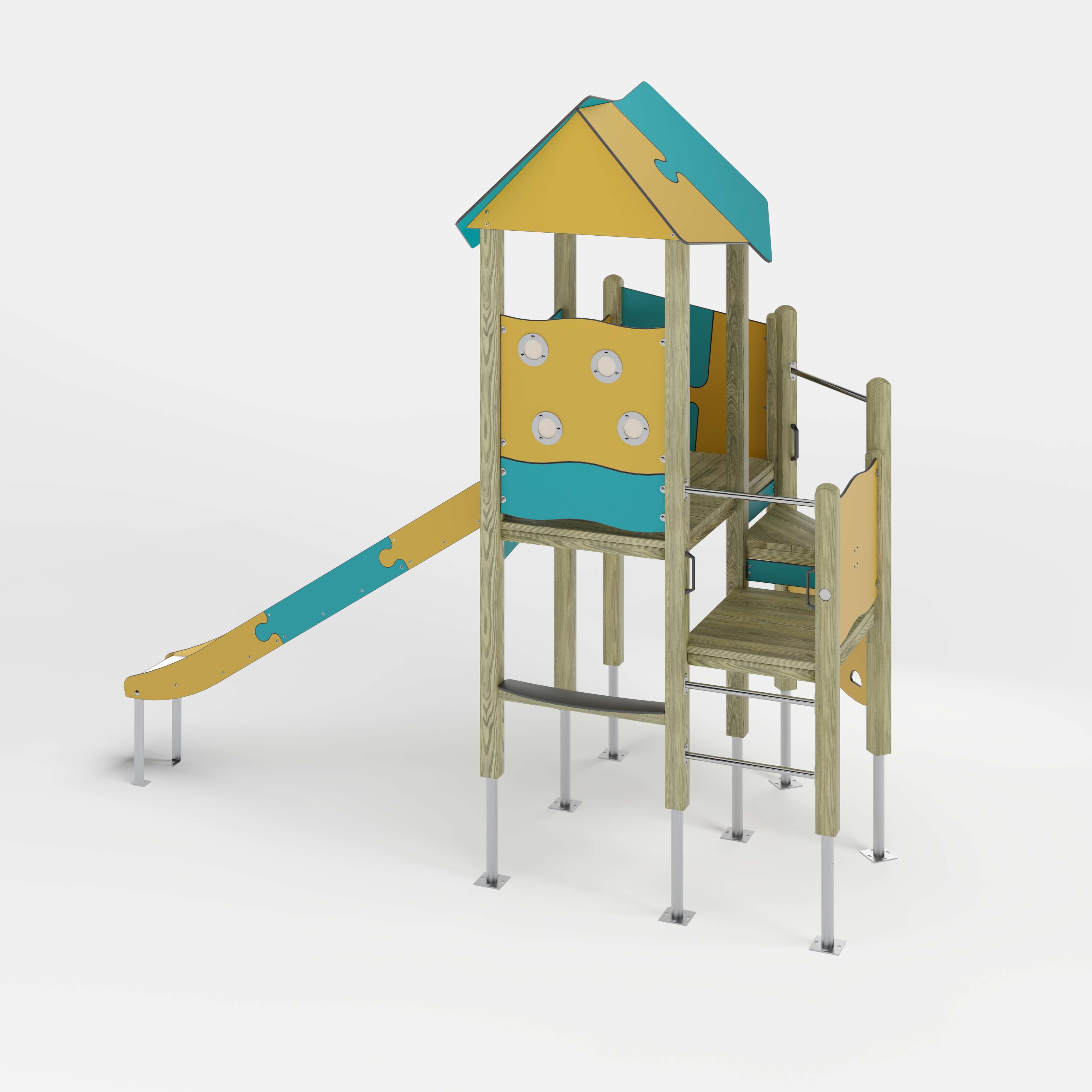 | Lieferumfang | 2x Adapter: Nadelholz oder Stahl 8x Pfostenkonstruktion: Nadelholz oder Stahl 4x Podestkonstruktion: Nadelholz 7x Puzzledach: Hochdrucklaminat (HPL) 1x Kletterplatte: Hochdrucklaminat (HPL) 1x Leiter senkrecht: Edelstahl (V2A) 5x Brüstung: Hochdrucklaminat (HPL) 2x Durchlaufsicherung: Edelstahl (V2A) 1x Rutscheneinstiegsplatte: Hochdrucklaminat (HPL) 1x Spiel-Brüstung Loch: Hochdrucklaminat (HPL) , Acrylglas (UV-Beständig) 1x Spiel-Brüstung Stege: Hochdrucklaminat (HPL) 1x Spiel-Brüstung Würfelrad: Hochdrucklaminat (HPL) , Stahl feuerverzinkt 2x Griffset: Aluminium, beschichtet 6x Seitenschutz: Hochdrucklaminat (HPL) 1x Theke: Nadelholz, Hochdrucklaminat (HPL) 1x Rutsche: Edelstahl (V2A) Beschläge: Edelstahl (V2A) |