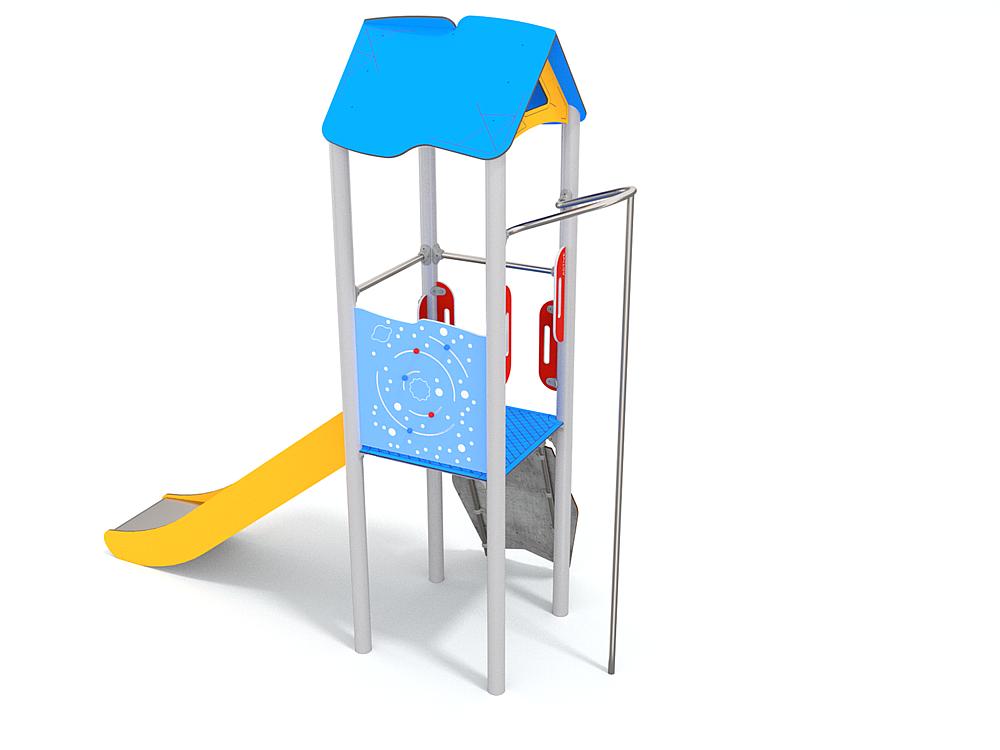 1x Spielturm mit Dach: Stahl Pulver, HDPE, Hochdrucklaminat (HPL), Edelstahl 1x Kletterplatte: Hochdrucklaminat (HPL), Polyester 1x Rutschstange: Edelstahl 1x Rutsche PH 120 cm: Edelstahl, HDPE |