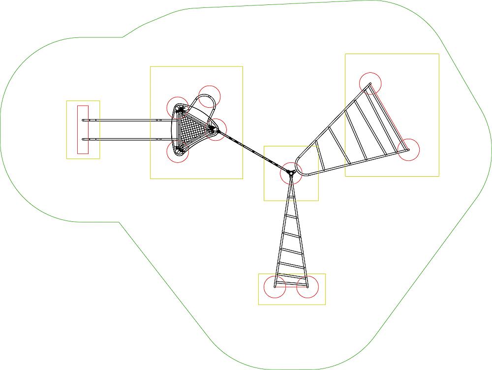 - Ausreichend dicken und gut verteilten Fallschutz sowie korrekte Abdeckung der Fundamente