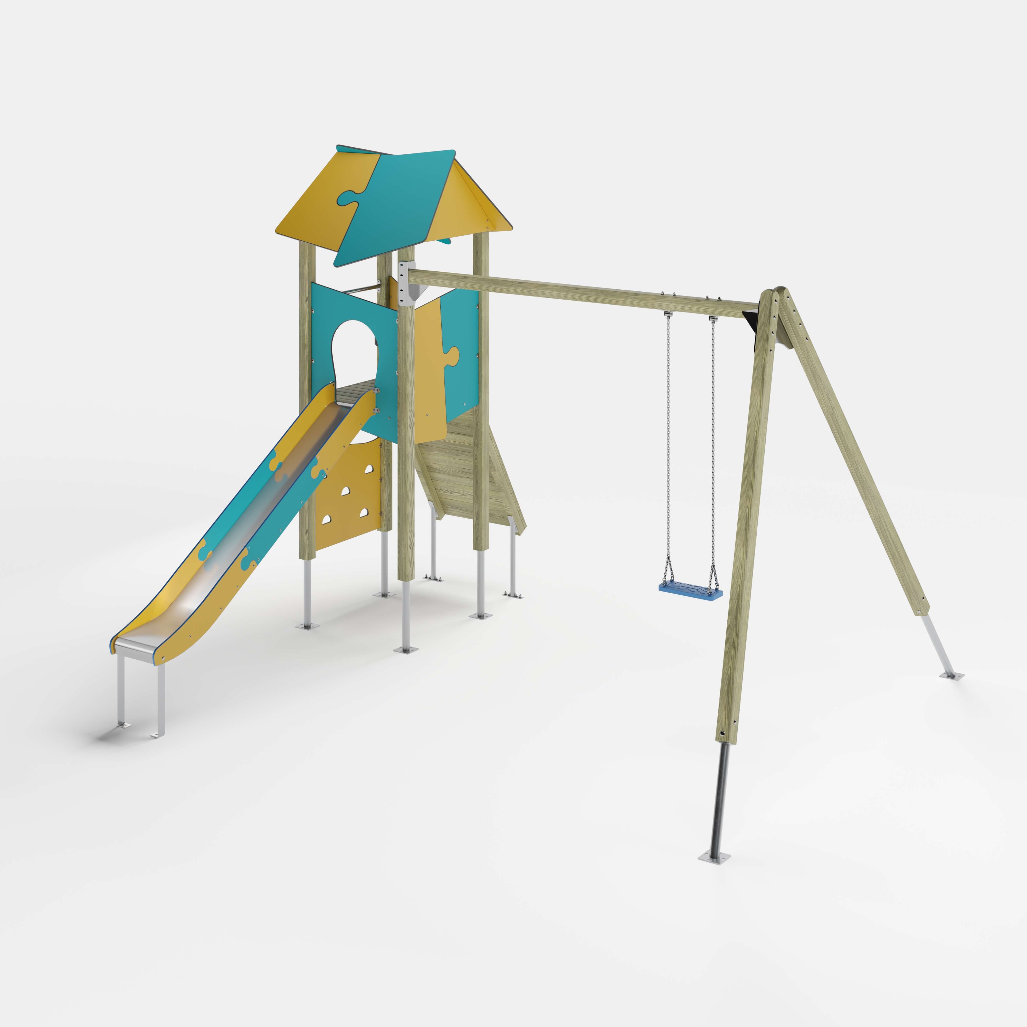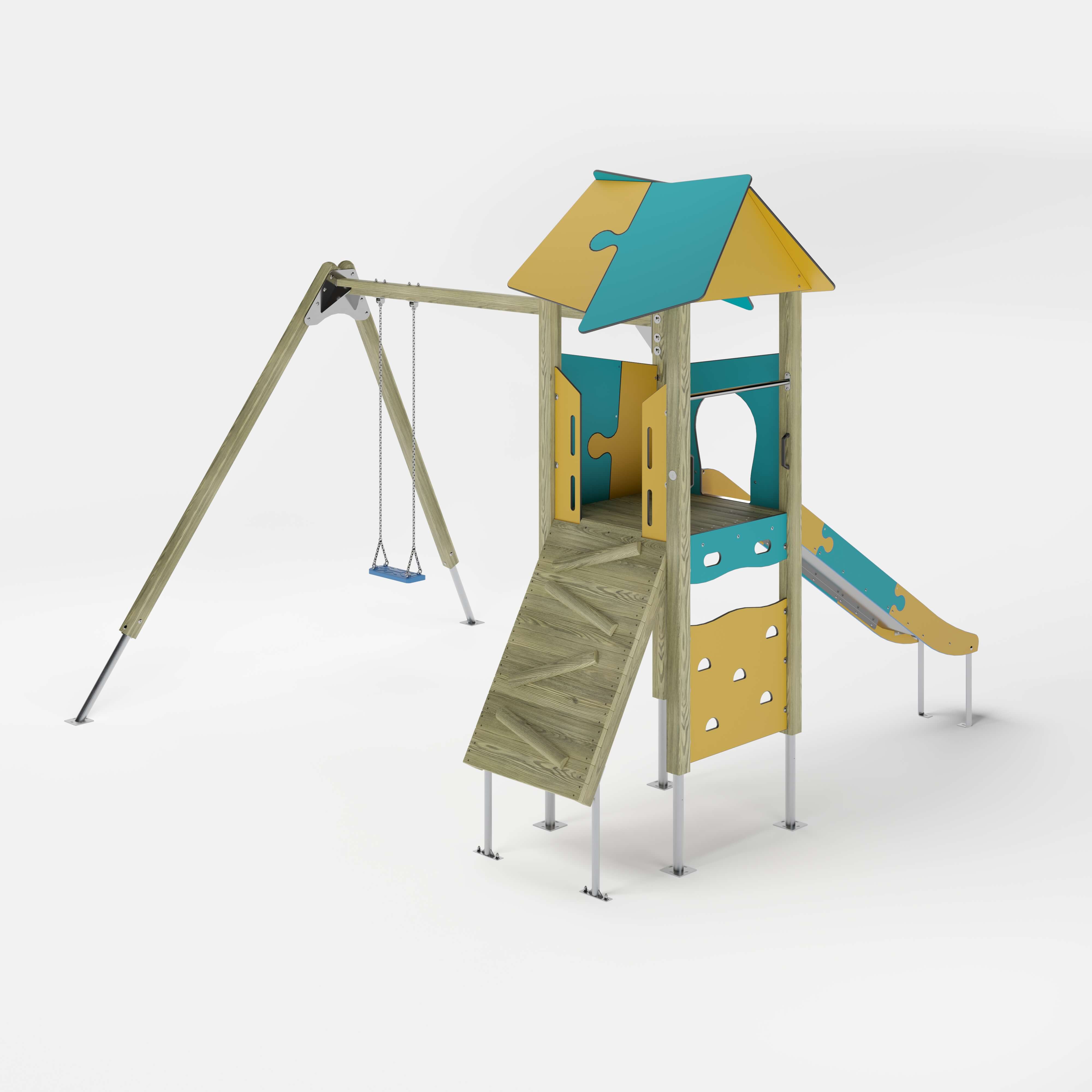| Lieferumfang | 4x Pfostenkonstruktion: Nadelholz oder Stahl1x Anbauschaukel: Nadelholz oder Stahl, Stahl feuerverzinkt1x Podestkonstruktion: Nadelholz7x Puzzledach: Hochdrucklaminat (HPL)2x Kletterplatte: Hochdrucklaminat (HPL)1x Rampe: Nadelholz2x Brüstung: Hochdrucklaminat (HPL)1x Durchlaufsicherung: Edelstahl (V2A)1x Rutscheneinstiegsplatte: Hochdrucklaminat (HPL)1x Zugangsverengung: Hochdrucklaminat (HPL)1x Griffset: Aluminium, beschichtet6x Seitenschutz: Hochdrucklaminat (HPL)1x Rutsche: Edelstahl (V2A)Beschläge: Edelstahl (V2A) |