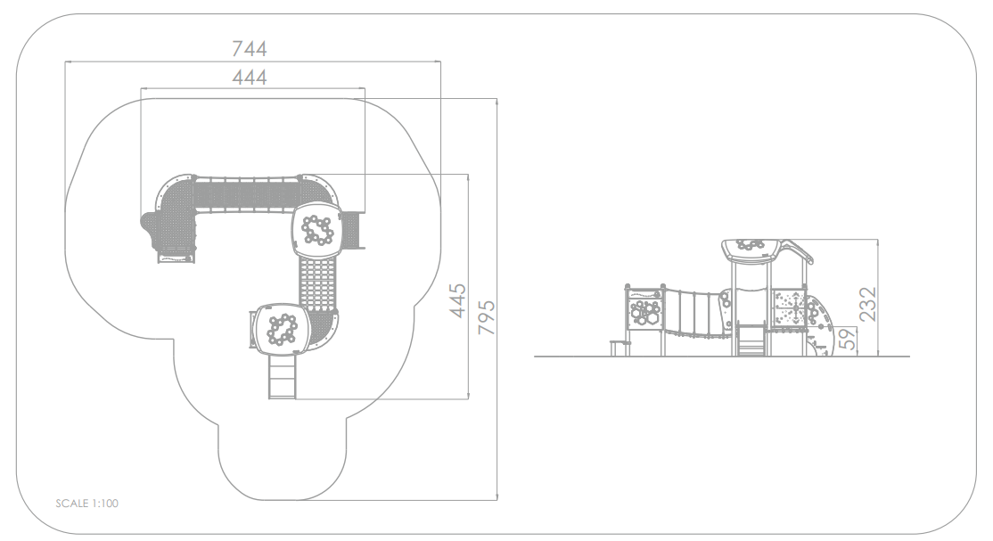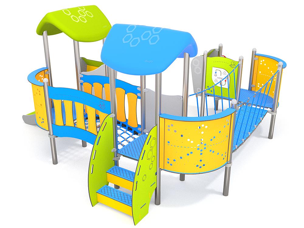3x Spielturm 3eck mit Balkon: Edelstahl, Hochdrucklaminat (HPL), Stahl Pulver 2x Spielturm mit Dach: Edelstahl, Hochdrucklaminat (HPL), HDPE, Polyethylen 2x Spielturm: Edelstahl, Hochdrucklaminat (HPL), HDPE 1x Wackelbrücke: Hochdrucklaminat (HPL), Polypropylen 1x Brücke mit Netz: Hochdrucklaminat (HPL), HDPE, Polypropylen 1x Trittstufe: Hochdrucklaminat (HPL) 1x Treppe: Hochdrucklaminat (HPL), HDPE 1x Rutsche PH 59 cm: HDPE, Polyester |