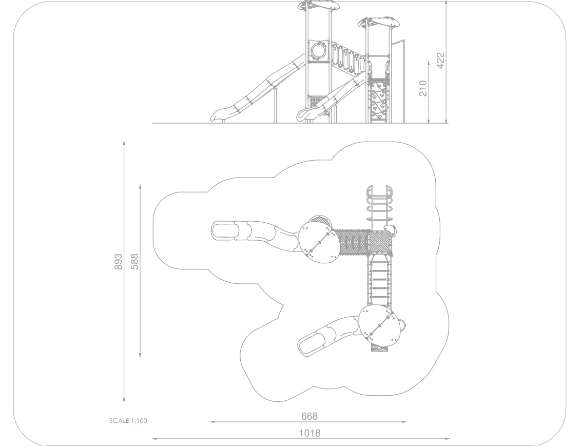 2x Spielturm mit Dach: Edelstahl, Hochdrucklaminat (HPL), HDPE 1x Spielturm: Edelstahl, Hochdrucklaminat (HPL), HDPE 1x Leiter: Edelstahl 1x Kletterrampe: Hochdrucklaminat (HPL), Polyester 1x Spielbrüstung TicTacToe: Polyethylen, Edelstahl 1x Brücke: Hochdrucklaminat (HPL), HDPE 1x Strickleiterbrücke: Polypropylen, Edelstahl 1x Rutschstange: Edelstahl 1x Rutsche PH 210 cm: LDPE (Low-Density-Polyethylen) 1x Rutsche PH 150 cm: LDPE (Low-Density-Polyethylen) |