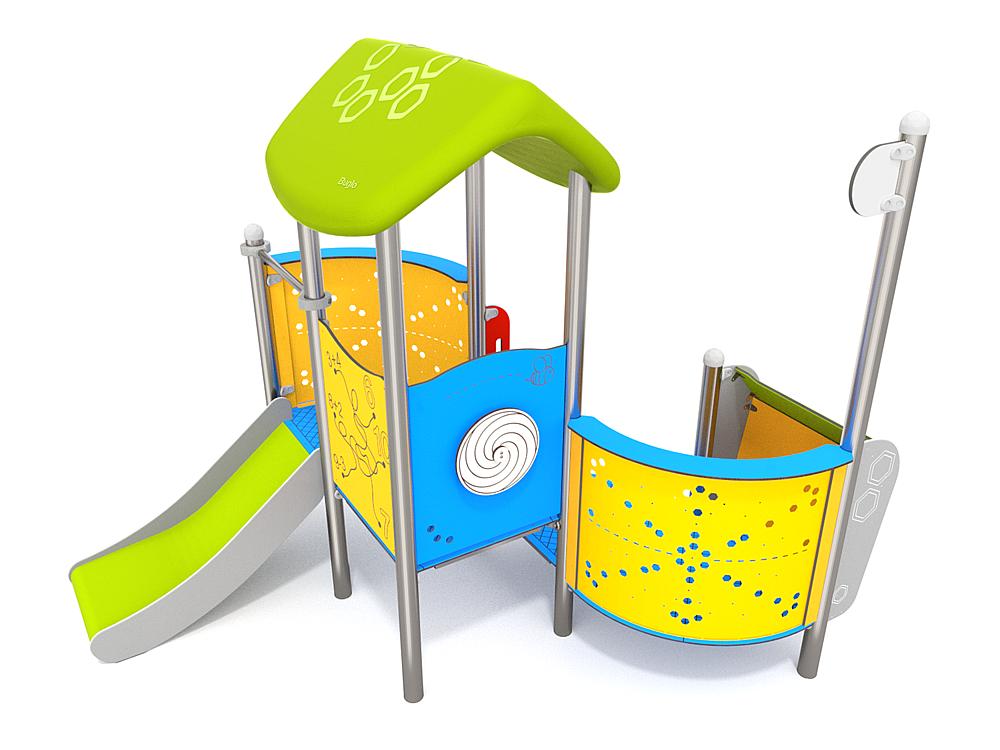 2x Spielturm 3eck mit Balkon: Edelstahl, Hochdrucklaminat (HPL), Stahl Pulver 1x Spielturm 3eck: Edelstahl, Hochdrucklaminat (HPL) 1x Spielturm mit Dach: Edelstahl, Hochdrucklaminat (HPL), HDPE, Polyethylen 1x Rutsche PH 59 cm: HDPE, Polyester |
