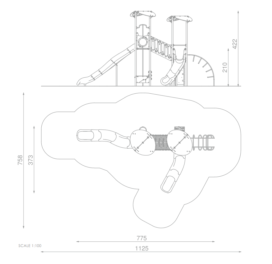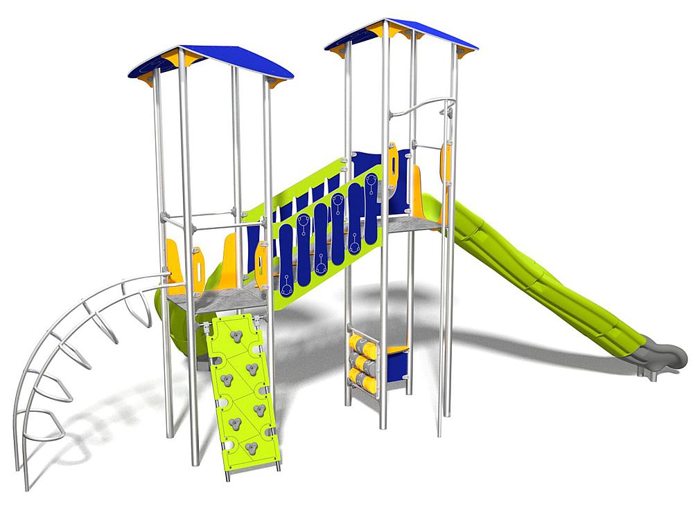 2x Spielturm mit Dach: Edelstahl, Hochdrucklaminat (HPL), HDPE 1x Kletterrampe: Hochdrucklaminat (HPL), Polyester 1x Leiter: Edelstahl 1x Spieltheke: HDPE 1x Spielbrüstung TicTacToe: Polyethylen, Edelstahl 1x Brücke: Hochdrucklaminat (HPL), HDPE 1x Rutschstange: Edelstahl 1x Rutsche PH 210 cm: LDPE (Low-Density-Polyethylen) 1x Rutsche PH 150 cm: LDPE (Low-Density-Polyethylen) |