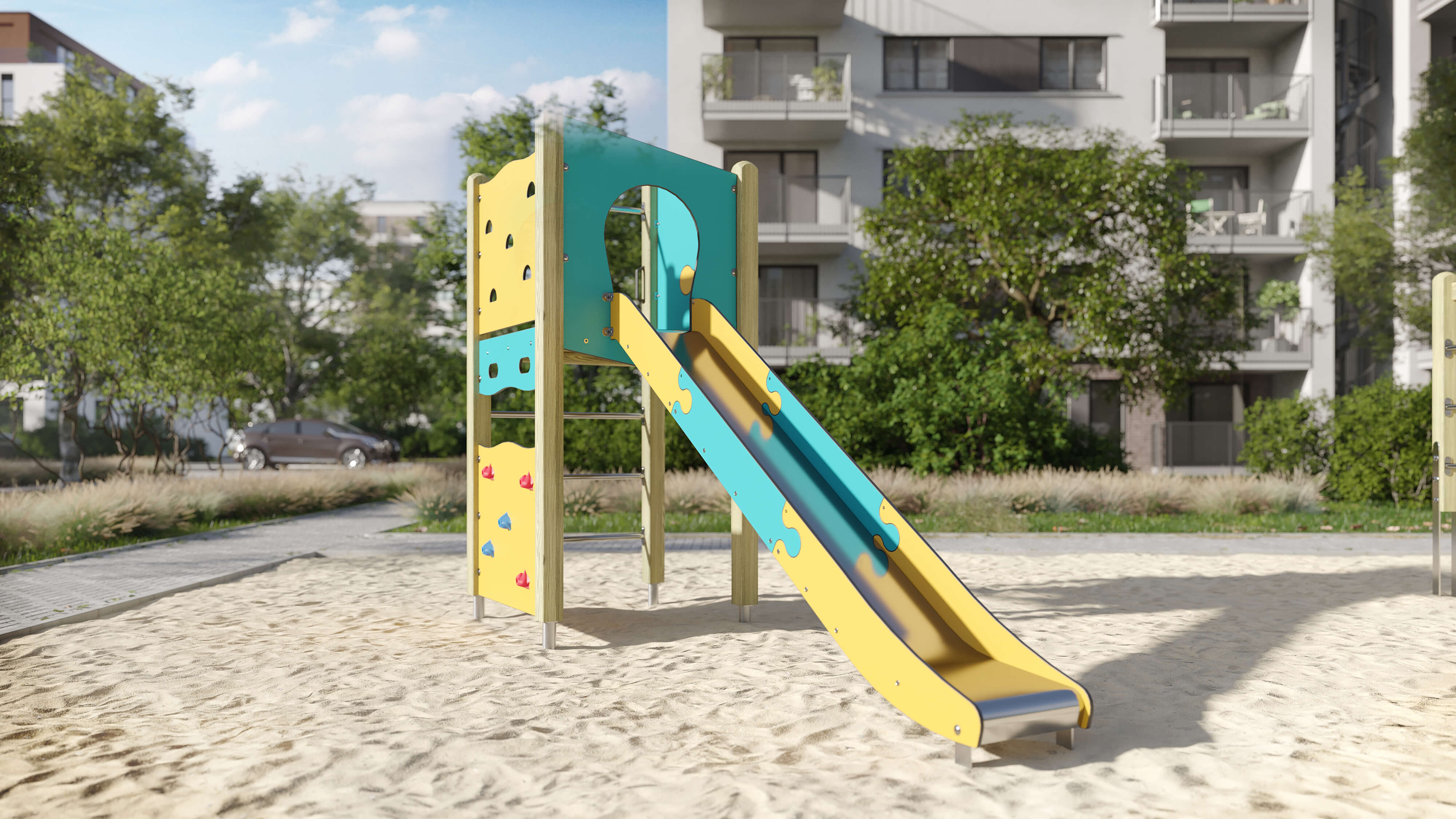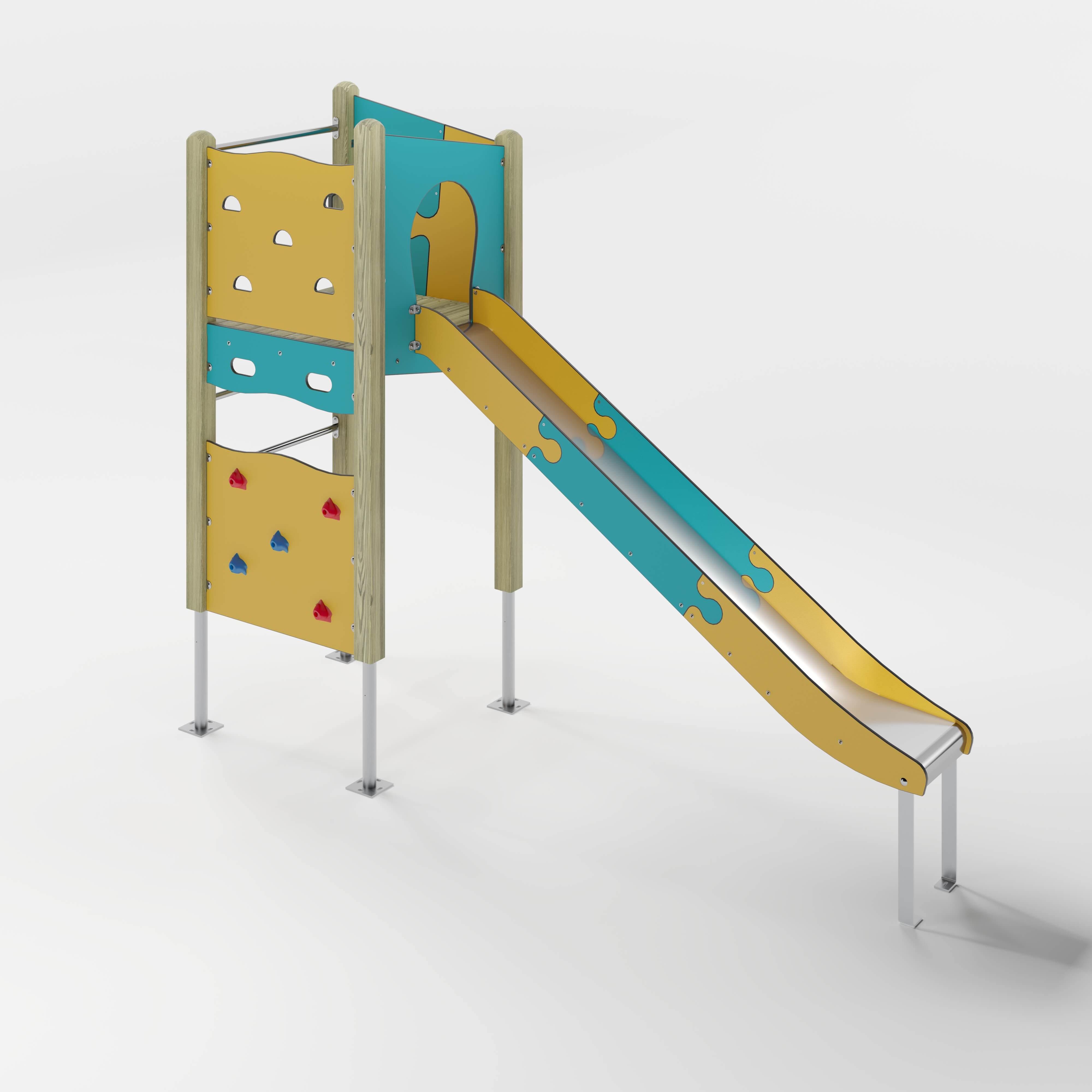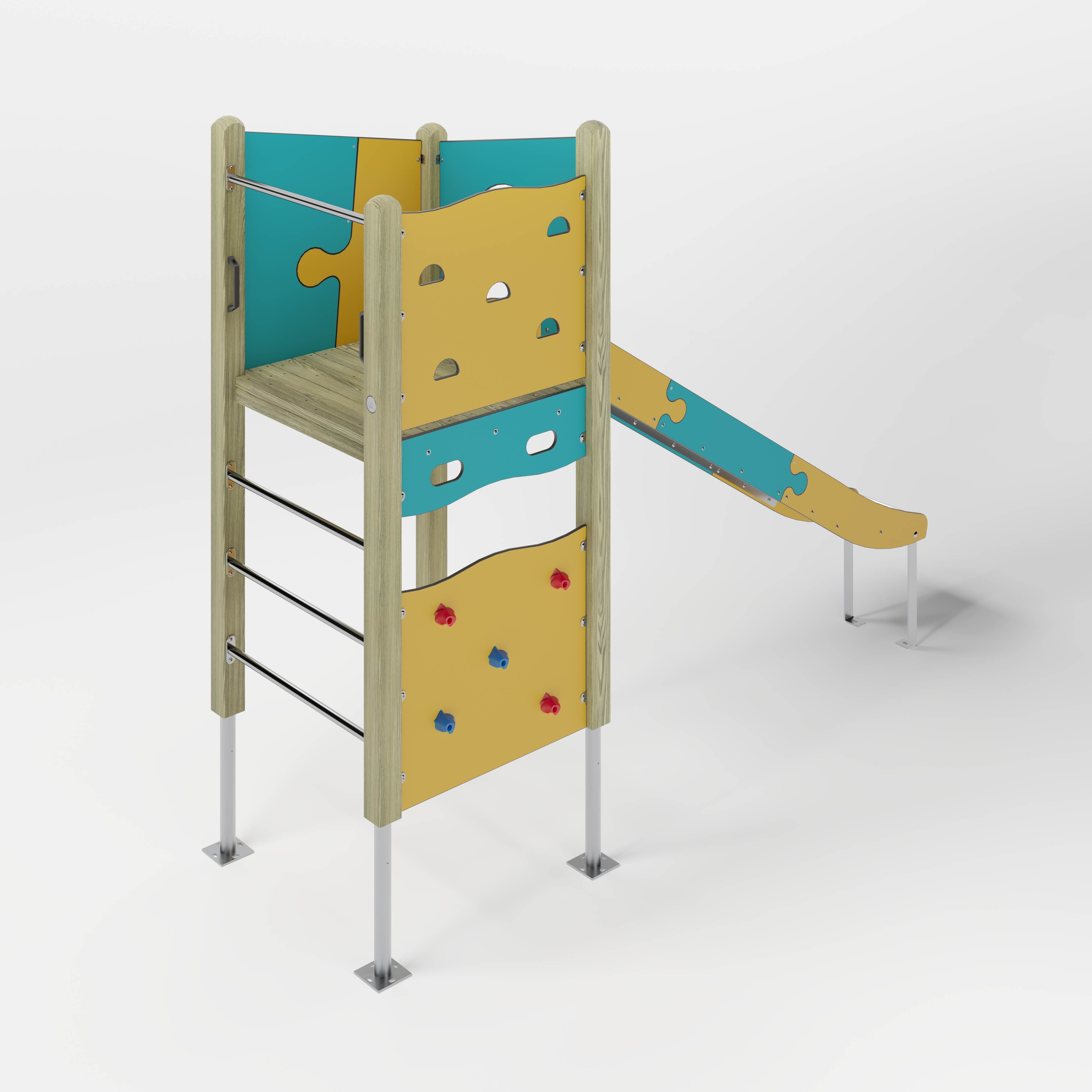| Lieferumfang | 4x Pfostenkonstruktion: Nadelholz oder Stahl 1x Podestkonstruktion: Nadelholz 1x Kletterplatte: Hochdrucklaminat (HPL) , Glasfaserverstärkter Kunststoff (GFK) 2x Kletterplatte: Hochdrucklaminat (HPL) 1x Leiter senkrecht: Edelstahl (V2A) 2x Brüstung: Hochdrucklaminat (HPL) 1x Durchlaufsicherung: Edelstahl (V2A) 1x Rutscheneinstiegsplatte: Hochdrucklaminat (HPL) 1x Griffset: Aluminium, beschichtet 6x Seitenschutz: Hochdrucklaminat (HPL) 1x Rutsche: Edelstahl (V2A) Beschläge: Edelstahl (V2A) |