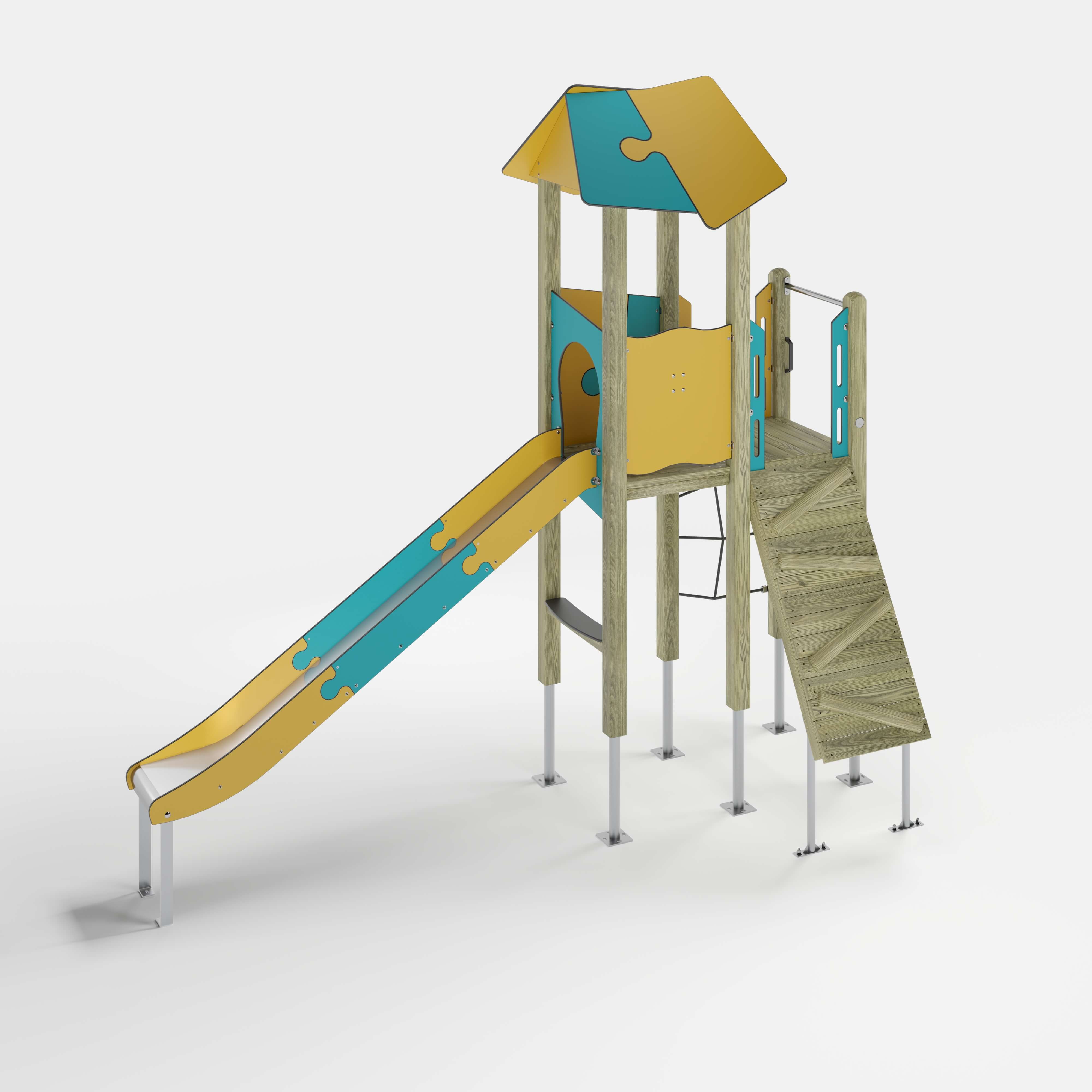 | Lieferumfang | 6x Pfostenkonstruktion: Nadelholz oder Stahl2x Podestkonstruktion: Nadelholz7x Puzzledach: Hochdrucklaminat (HPL)1x Leiter senkrecht: Edelstahl (V2A)1x Netzaufstieg senkrecht: kunststoffummanteltes Stahlseil1x Rampe: Nadelholz1x Durchlaufsicherung: Edelstahl (V2A)2x Puzzlebrüstung: Hochdrucklaminat (HPL)1x Rutscheneinstiegsplatte: Hochdrucklaminat (HPL)2x Zugangsverengung: Hochdrucklaminat (HPL)1x Spiel-Brüstung Schiffsrad: Hochdrucklaminat (HPL) , Stahl feuerverzinkt1x Griffset: Aluminium, beschichtet6x Seitenschutz: Hochdrucklaminat (HPL)1x Theke: Nadelholz, Hochdrucklaminat (HPL)1x Rutsche: Edelstahl (V2A)Beschläge: Edelstahl (V2A) |