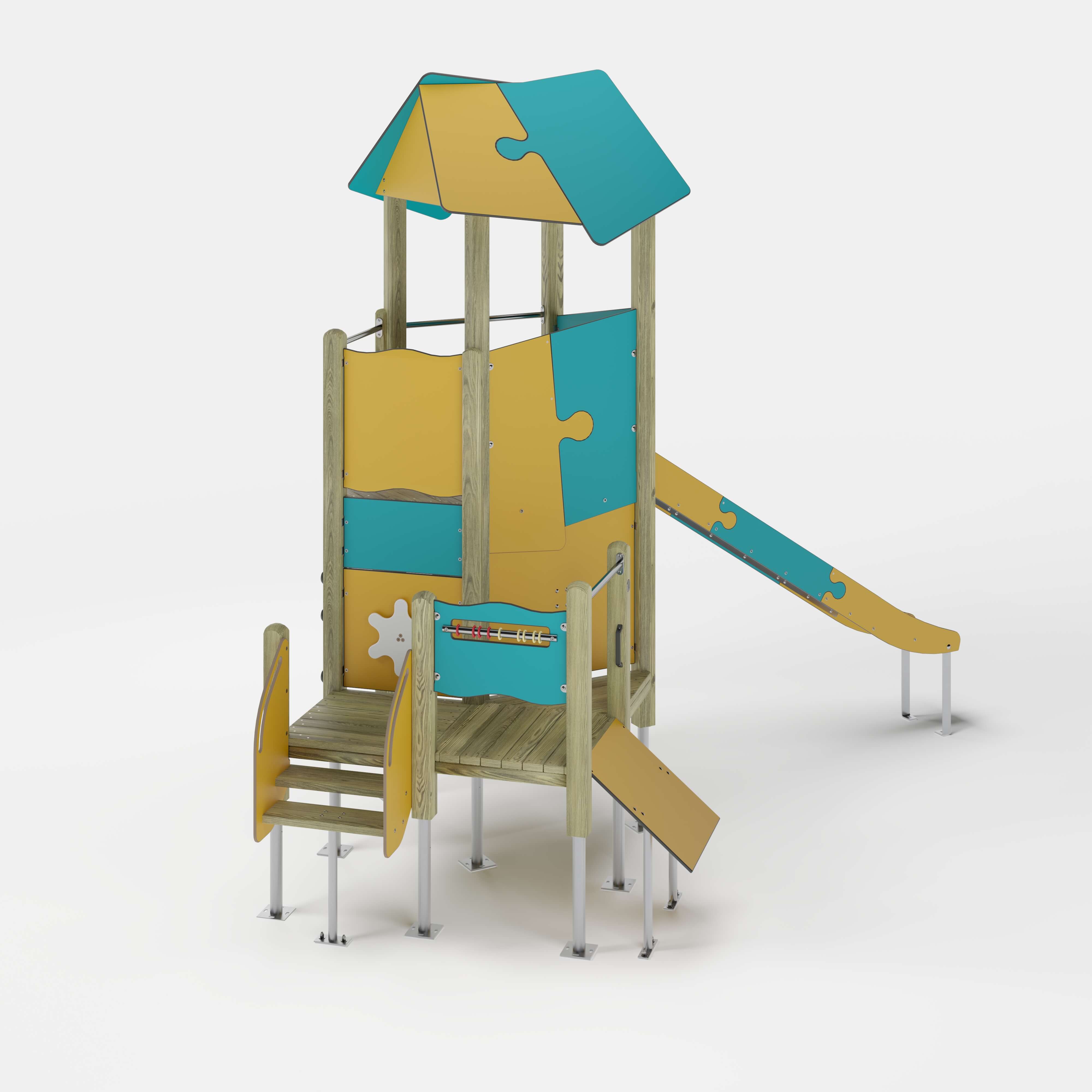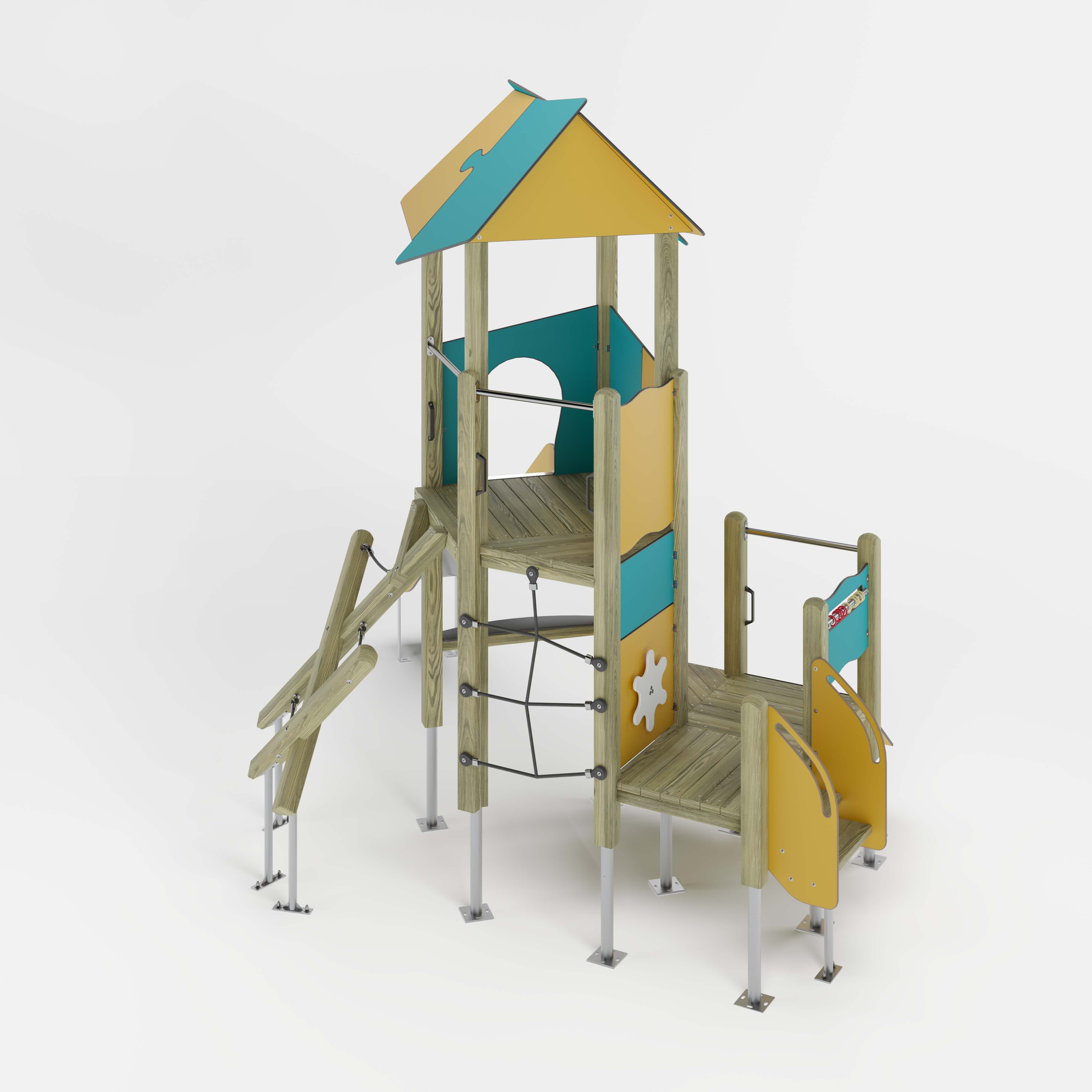 | Lieferumfang | 2x Adapter: Nadelholz oder Stahl 9x Pfostenkonstruktion: Nadelholz oder Stahl 5x Podestkonstruktion: Nadelholz 7x Puzzledach: Hochdrucklaminat (HPL) 1x Netzaufstieg senkrecht: kunststoffummanteltes Stahlseil 1x Treppe: Nadelholz, Hochdrucklaminat (HPL) 1x XY-Aufstieg: Nadelholz 4x Brüstung: Hochdrucklaminat (HPL) 3x Durchlaufsicherung: Edelstahl (V2A) 1x Rutscheneinstiegsplatte: Hochdrucklaminat (HPL) 1x Spiel-Brüstung Buchstabenrad: Hochdrucklaminat (HPL) , Stahl feuerverzinkt 1x Spiel-Brüstung Steuerrad: Hochdrucklaminat (HPL) 1x Spiel-Brüstung Zählringe: Hochdrucklaminat (HPL) , Robinie 3x Griffset: Aluminium, beschichtet 1x Kantholz: Nadelholz 1x Rutschbrett: Hochdrucklaminat (HPL) 6x Seitenschutz: Hochdrucklaminat (HPL) 1x Theke: Nadelholz, Hochdrucklaminat (HPL) 1x Rutsche: Edelstahl (V2A) Beschläge: Edelstahl (V2A) |