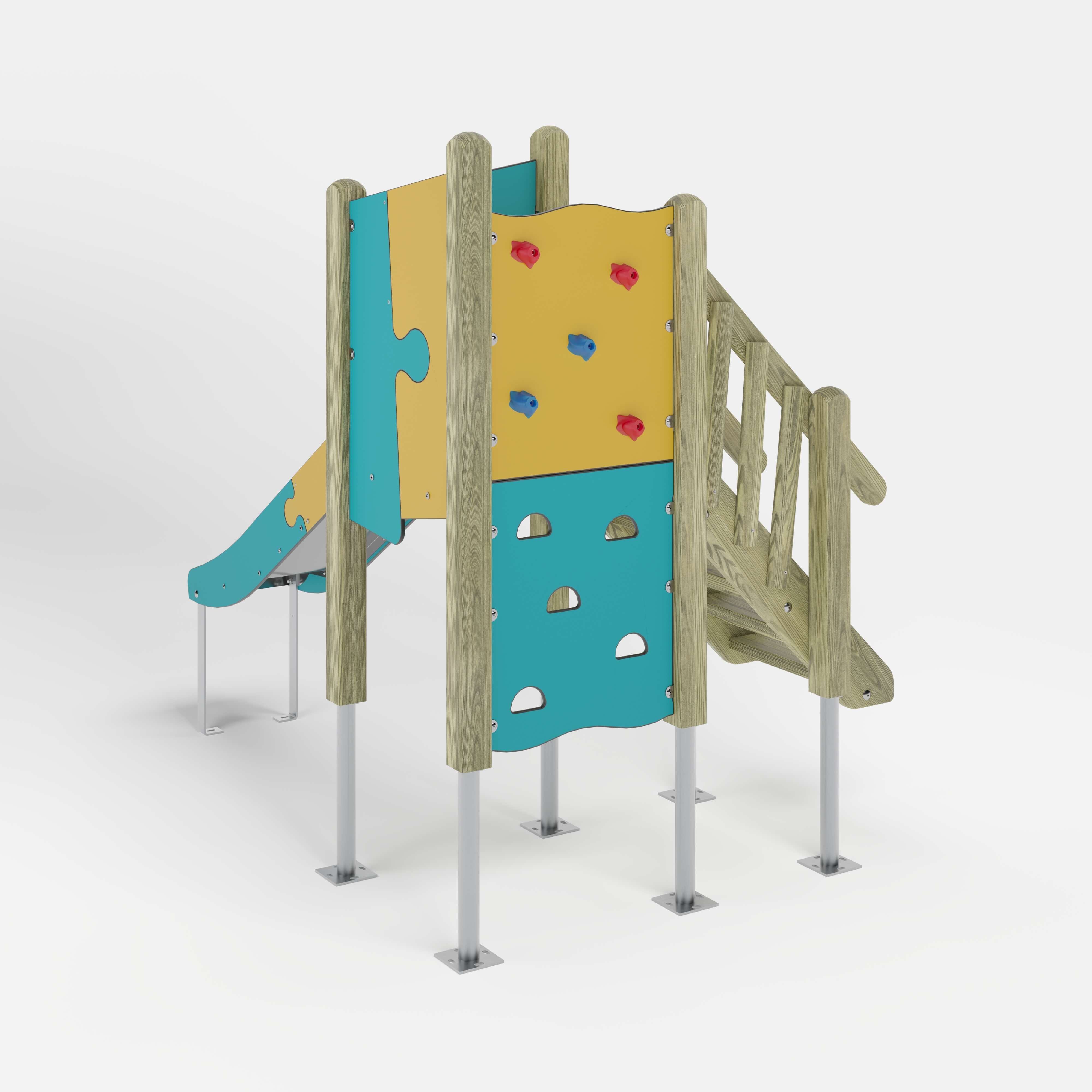 | Lieferumfang | 6x Pfostenkonstruktion: Nadelholz oder Stahl1x Podestkonstruktion: Nadelholz1x Kletterplatte: Hochdrucklaminat (HPL) , Glasfaserverstärkter Kunststoff (GFK)1x Kletterplatte: Hochdrucklaminat (HPL)1x Treppe: Nadelholz2x Puzzlebrüstung: Hochdrucklaminat (HPL)1x Rutscheneinstiegsplatte: Hochdrucklaminat (HPL)4x Seitenschutz: Hochdrucklaminat (HPL) Beschläge: Edelstahl (V2A) |