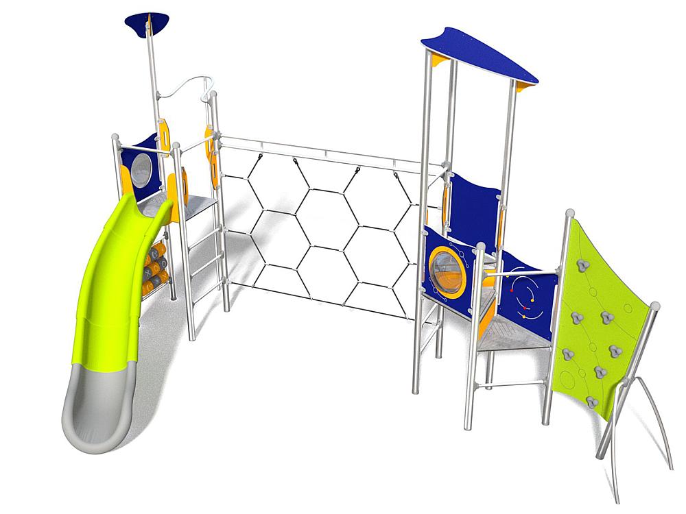 1x Spielturm: Edelstahl, Hochdrucklaminat (HPL), HDPE 2x Spielturm 3eck: Edelstahl, Hochdrucklaminat (HPL), HDPE 1x Spielturm 3eck mit Dach: Edelstahl, Hochdrucklaminat (HPL), HDPE 1x Spielbrüstung TicTacToe: Polyethylen, Edelstahl 3x Sprossenleiter: Edelstahl 1x Kletternetz: Edelstahl, Polypropylen 1x Kletterwand: Edelstahl, Hochdrucklaminat (HPL), Polyester 1x Rutschstange: Edelstahl 1x Rutsche PH 150 cm: LDPE (Low-Density-Polyethylen) |