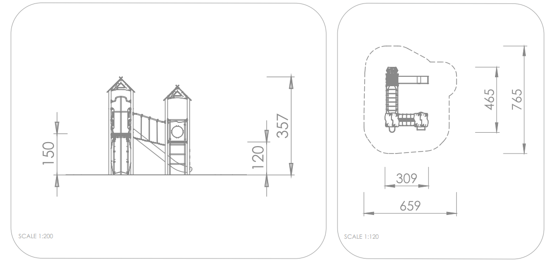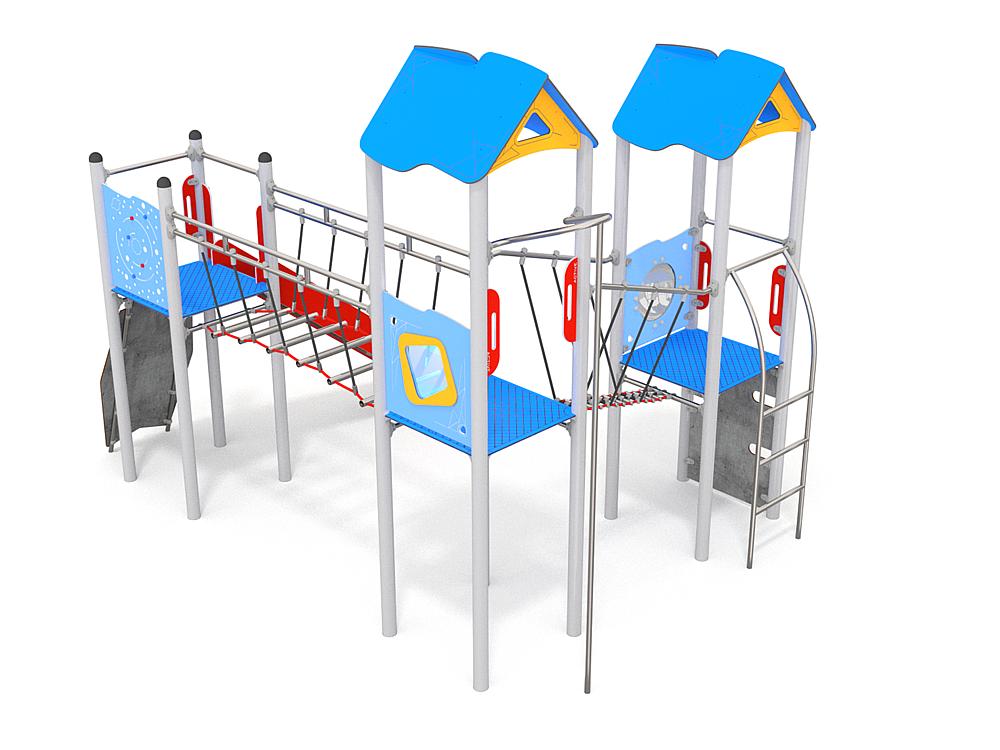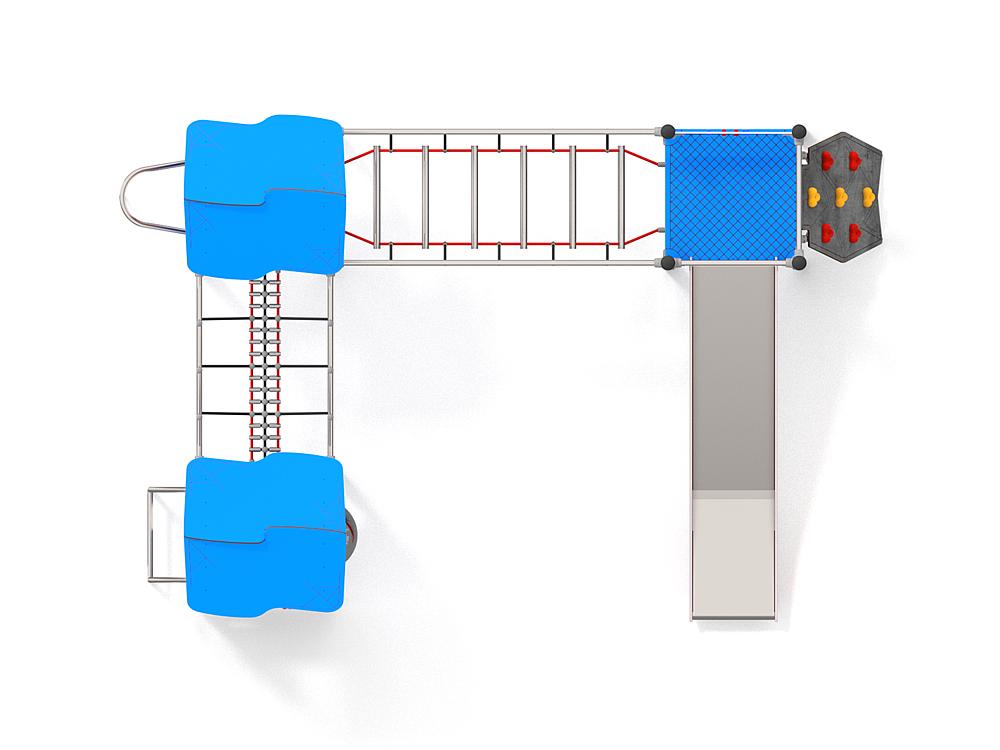 2x Spielturm mit Dach: Stahl Pulver, HDPE, Hochdrucklaminat (HPL), Edelstahl 1x Spielturm: Stahl Pulver, HDPE, Hochdrucklaminat (HPL), Edelstahl 1x Kletterplatte: Hochdrucklaminat (HPL), Polyester 1x Kletterrampe: Hochdrucklaminat (HPL), Polyester 1x Leiter: Edelstahl 1x Strickleiterbrücke: Polypropylen, Edelstahl 1x Wackelleiter: Polypropylen, Edelstahl 1x Rutschstange: Edelstahl 1x Rutsche PH 150 cm: Edelstahl, HDPE |