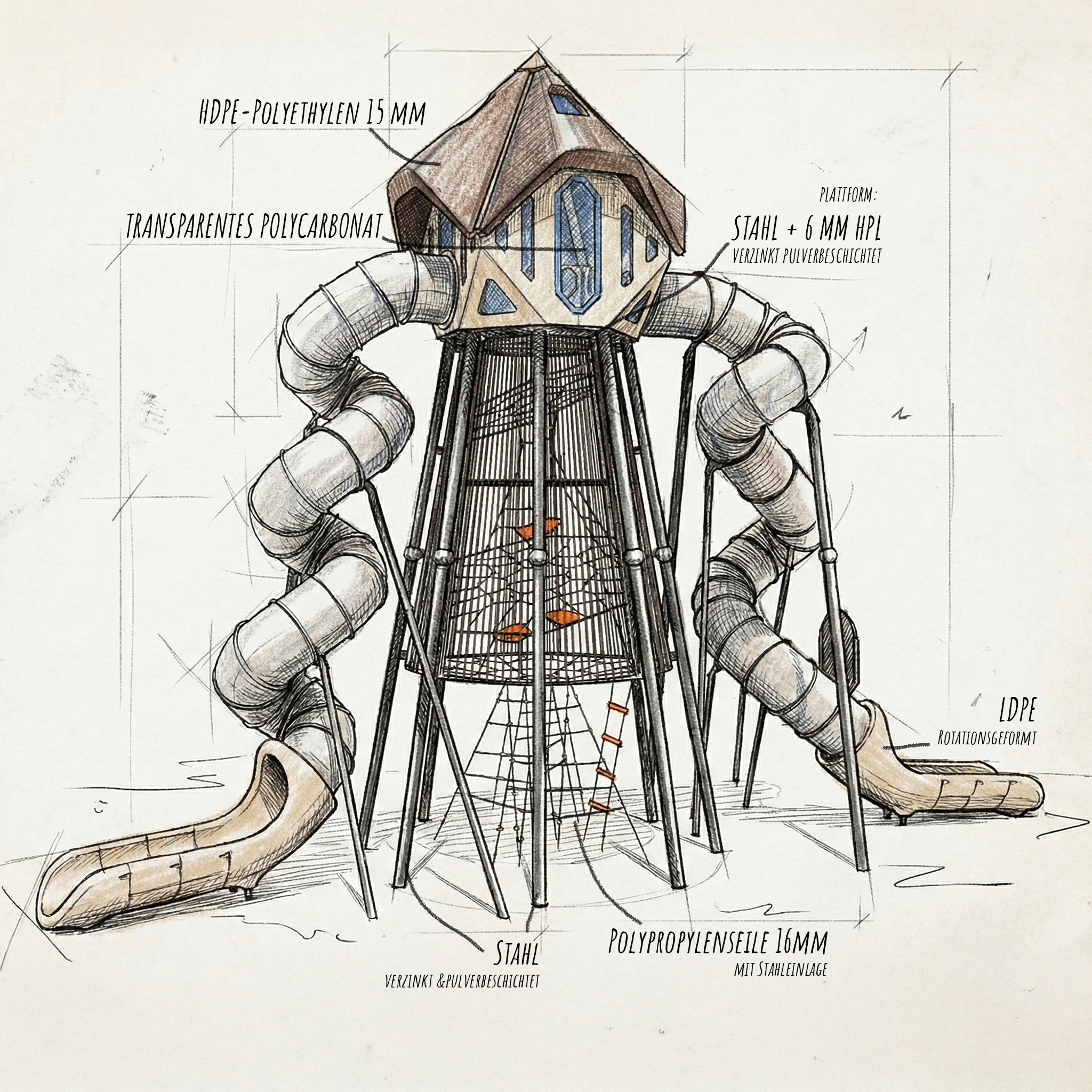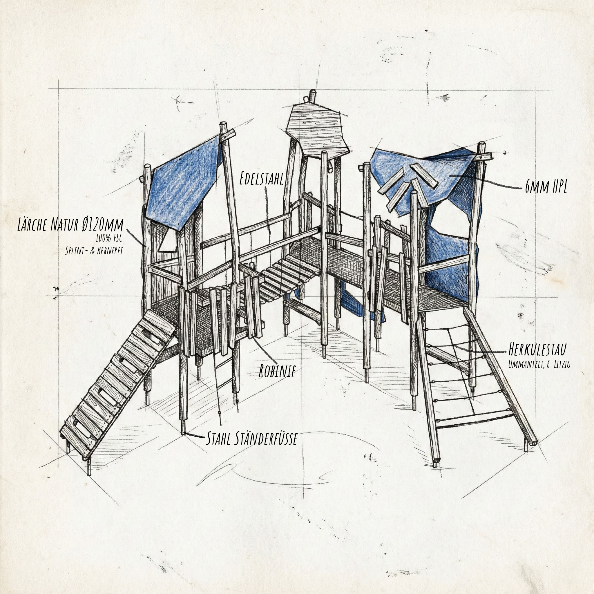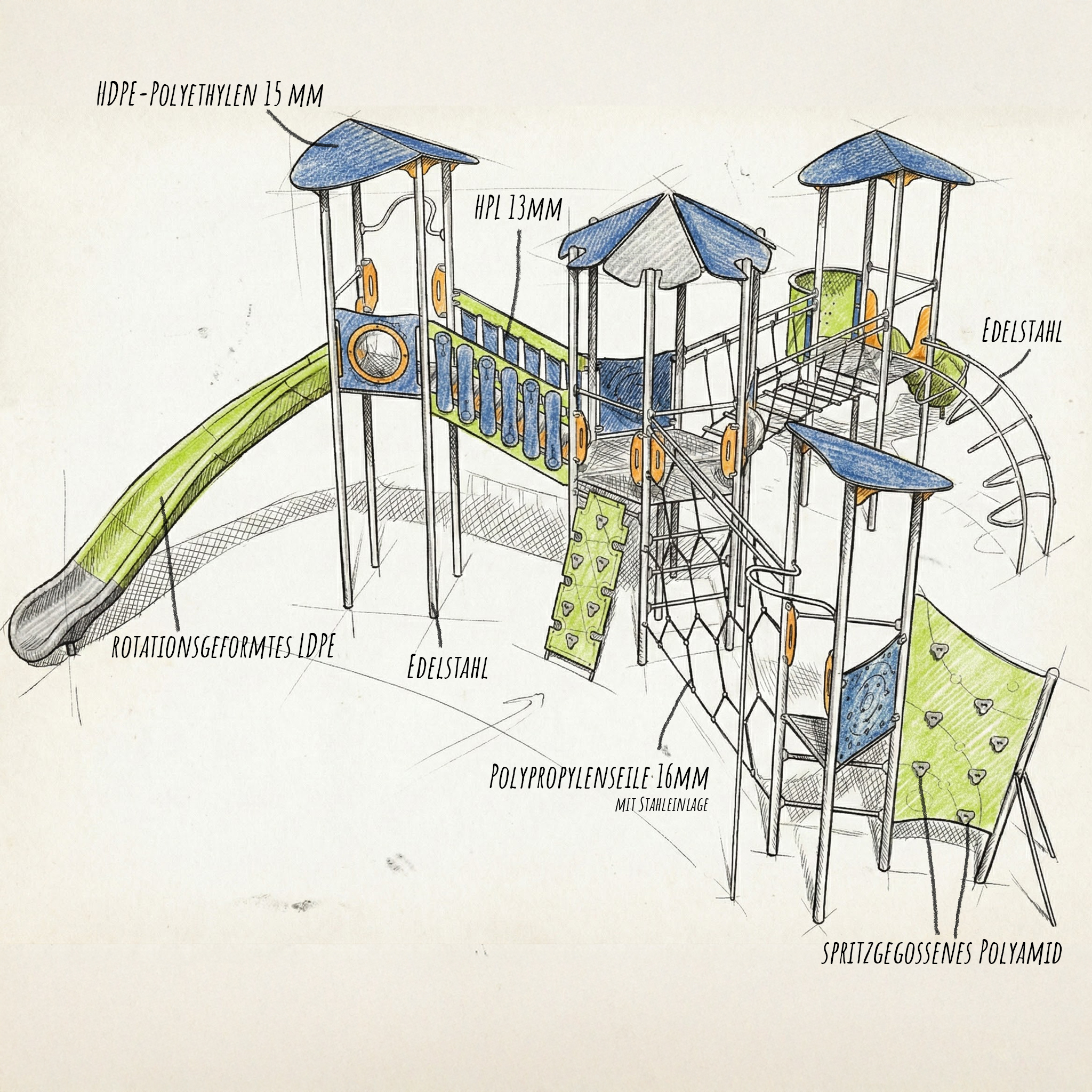 Die PUDSEL-Serie zeichnet sich durch ihr unverwechselbares Puzzle-Design aus. Klare Konturen und grafische Formen schaffen eine fröhliche, kindgerechte Optik, die auf jedem Spielplatz sofort ins Auge fällt. Gefertigt aus stabilem Nadelholz und wetterfestem HPL, bietet die Serie eine langlebige und gleichzeitig sympathische Lösung für Kindergärten, Schulhöfe und öffentliche Anlagen.