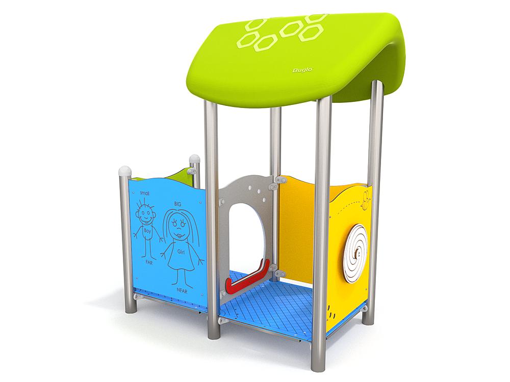 1x Spielturm mit Dach: Edelstahl, Polyethylen, Hochdrucklaminat (HPL), HDPE 1x Spielturm: Edelstahl, Polyethylen, Hochdrucklaminat (HPL), HDPE 1x Brüstung mit Durchgang: HDPE |