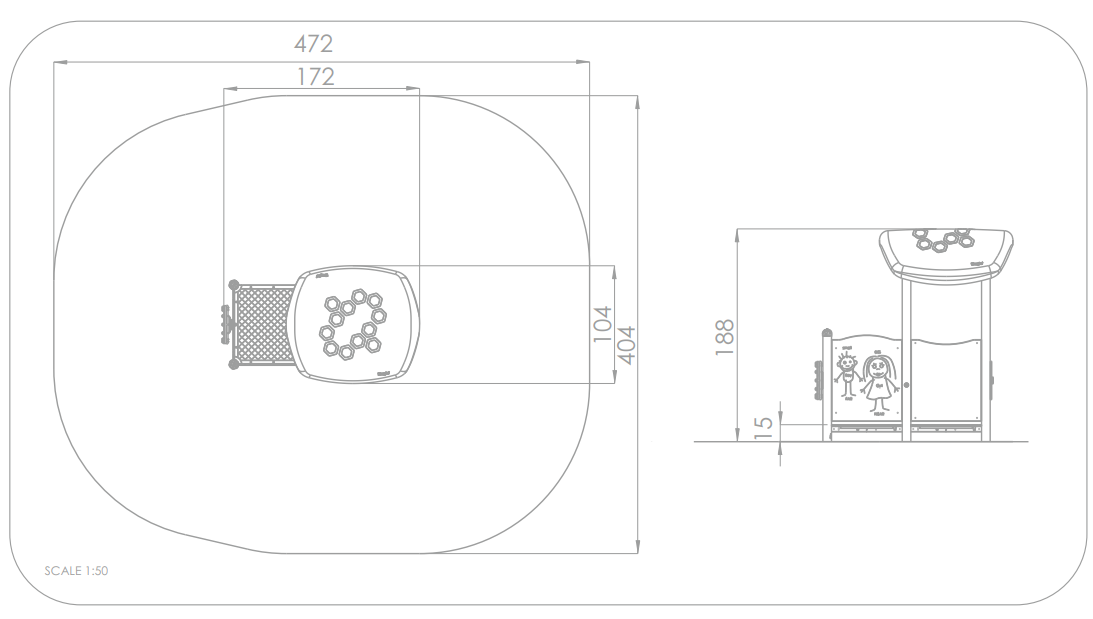 Rutschen aus Edelstahl AISI 304 mit einer 2 mm dicken Metallplatte, präzise im CNC-Verfahren gefertigt. Die Seitenteile bestehen aus 15 mm starkem HDPE-Polyethylen, das absolut feuchtigkeitsbeständig und UV-resistent ist.