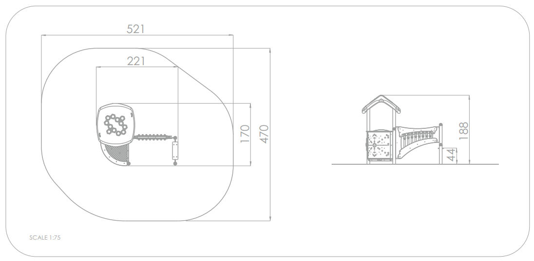 1x Spielturm mit Dach: Edelstahl, Hochdrucklaminat (HPL), HDPE, Polyethylene 1x Spielturm 3eck mit Balkon: Edelstahl, Hochdrucklaminat (HPL), HDPE, Stahl Pulver 1x Xylophon: Hochdrucklaminat (HPL), Aluminium 1x Spieltheke: HDPE |