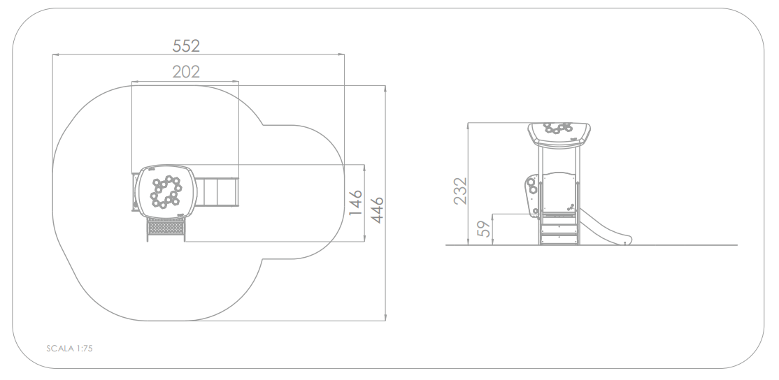 Rutschen aus Edelstahl AISI 304 mit einer 2 mm dicken Metallplatte, präzise im CNC-Verfahren gefertigt. Die Seitenteile bestehen aus 15 mm starkem HDPE-Polyethylen, das absolut feuchtigkeitsbeständig und UV-resistent ist.