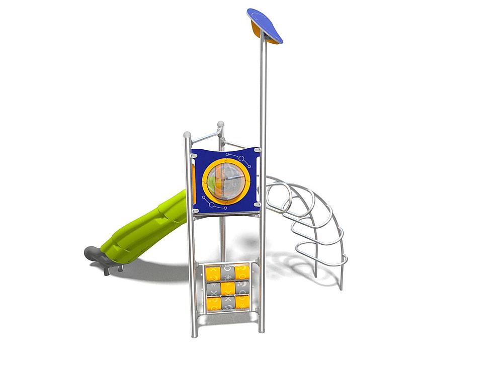 1x Spielturm 3eck: Edelstahl, Hochdrucklaminat (HPL), HDPE 1x Leiter: Edelstahl 1x Spielbrüstung TicTacToe: Polyethylen, Edelstahl 1x Rutsche PH 150 cm: LDPE (Low-Density-Polyethylen) |