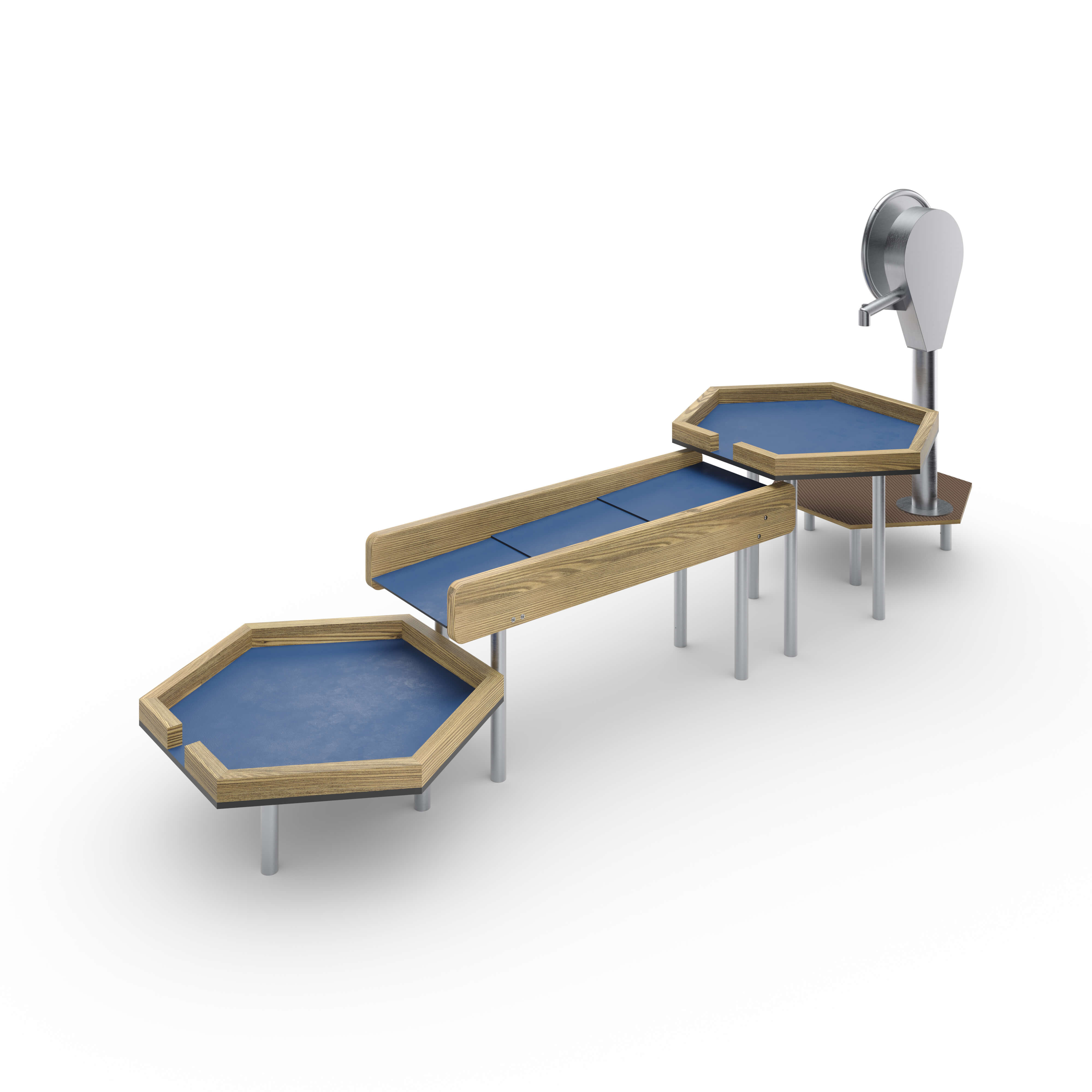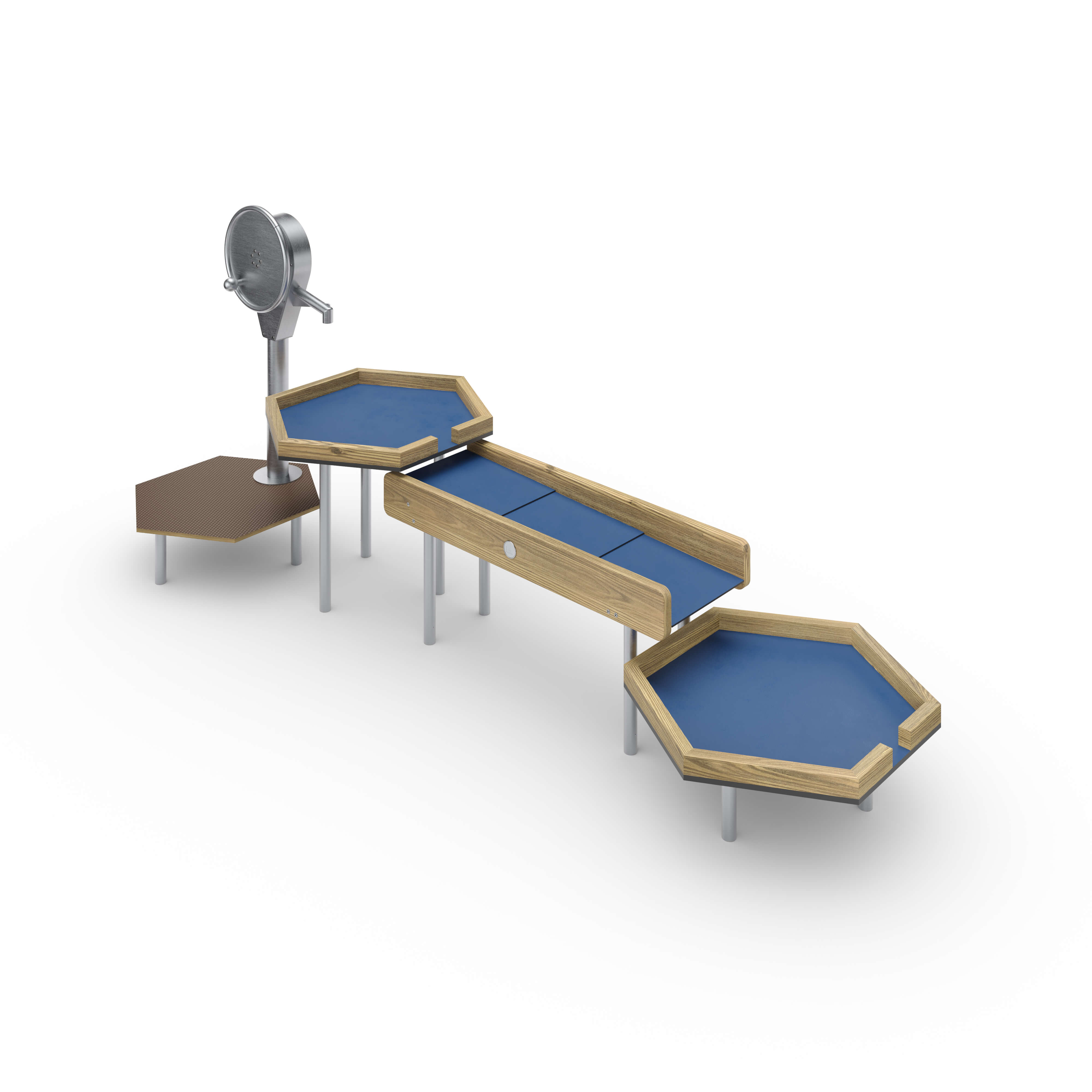 | Lieferumfang | 1x Kurbelpumpe: Edelstahl Selbstschlußventil Anschlussgarnitur Schmutzfilter 1x Podest: Hochdrucklaminat (HPL), Edelstahl (V2A) 2x Wasserbecken: Hochdrucklaminat (HPL), Nadelholz 1x Wasserlauf: Hochdrucklaminat (HPL), Nadelholz, Edelstahl (V2A) 3xStänderfuß 20 cm: Edelstahl 3xStänderfuß 56cm: Edelstahl Beschläge: Edelstahl (V2A) |